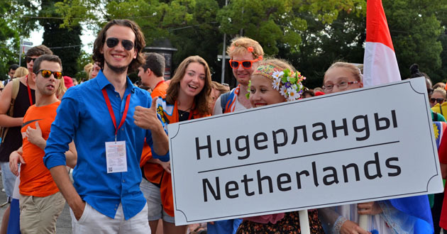 Участники битвы хоров из Нидерландов прошли в колоне парада наций в Сочи 12 июля от Зимнего театра по Курортному проспекту до Южного мола Морского порта
