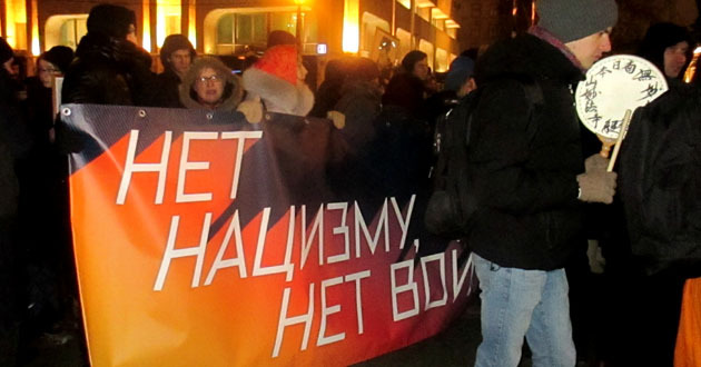Участники антифашистского шествия в память о Маркелове и Бабуровой