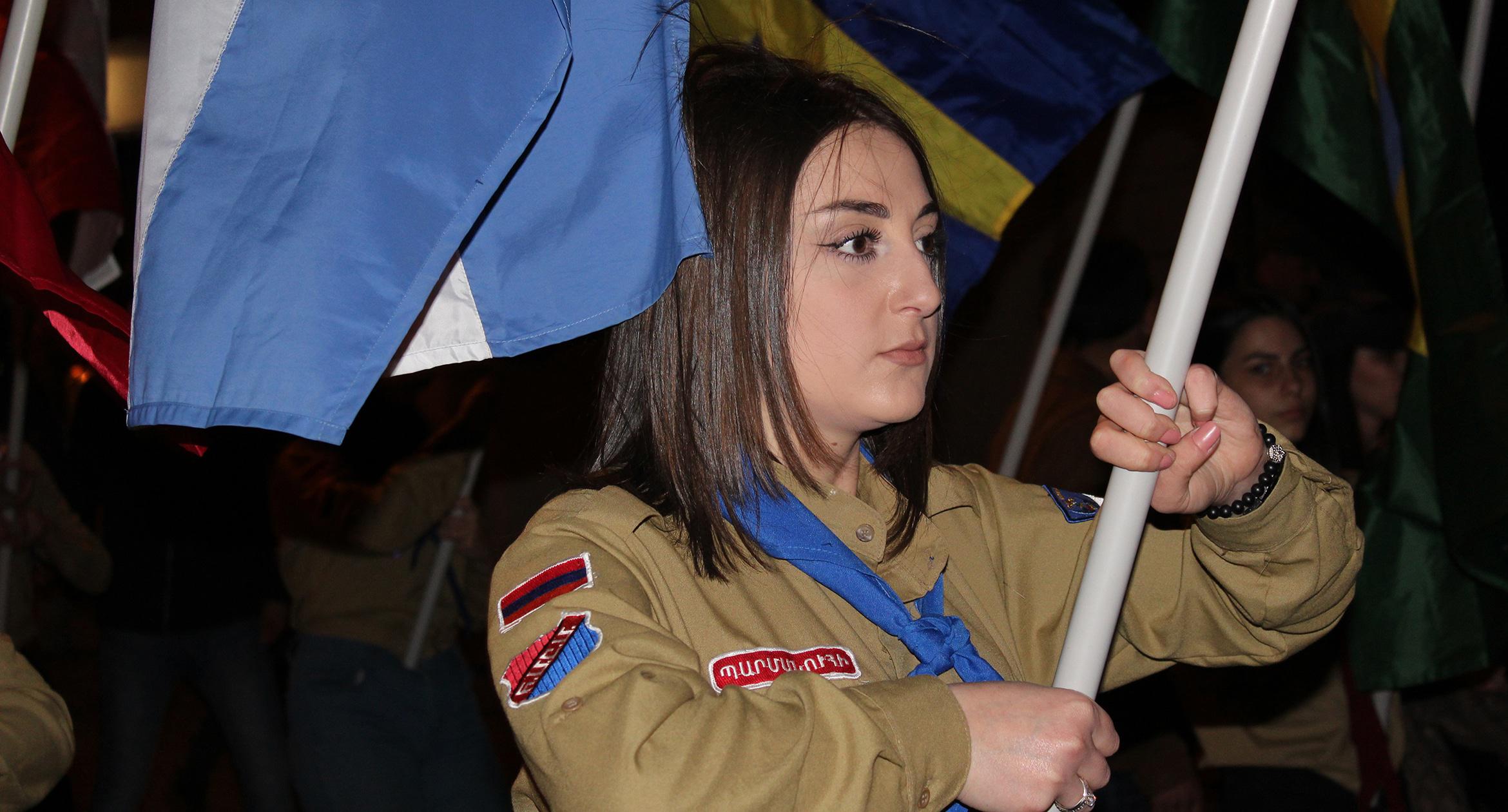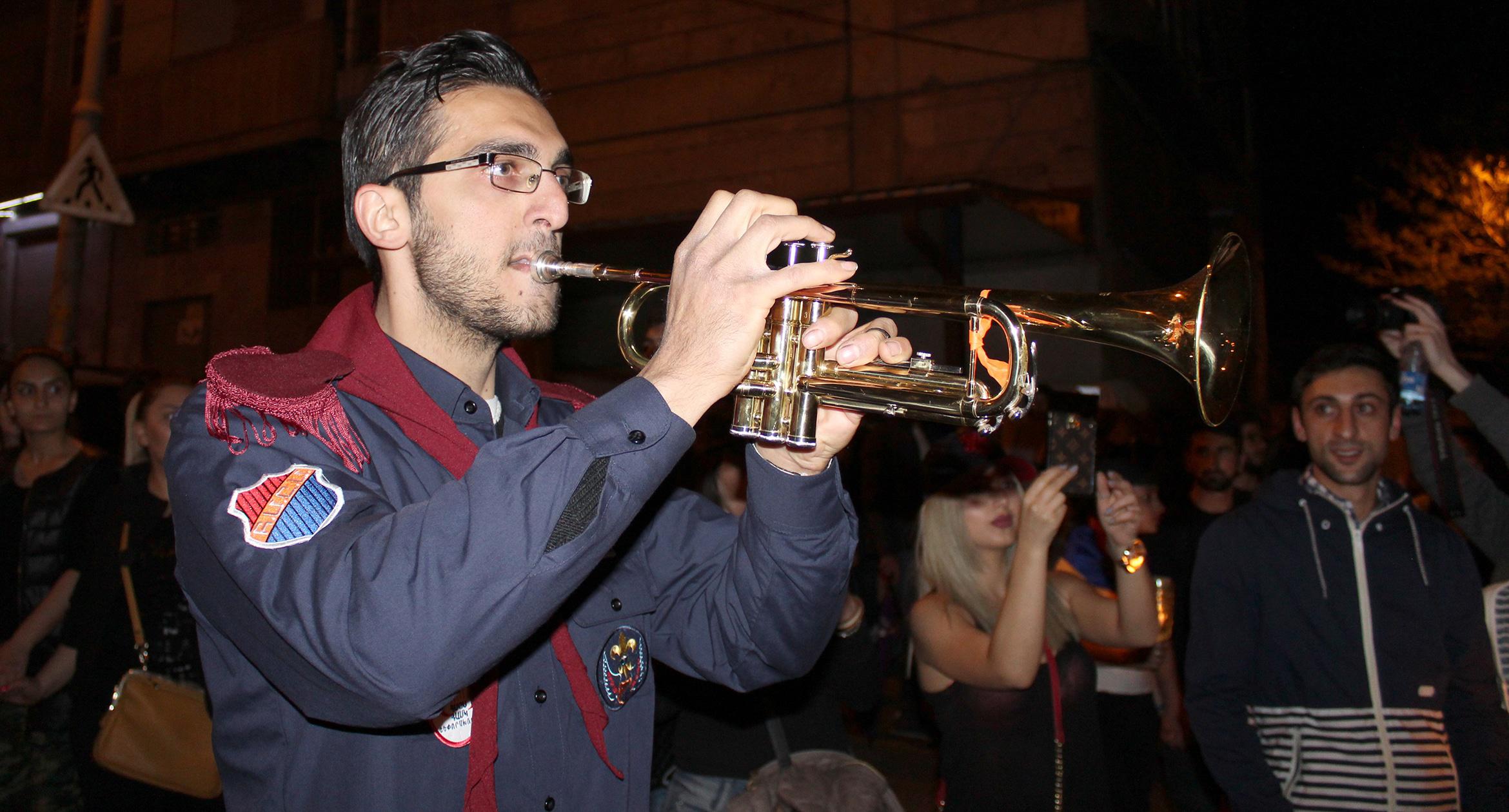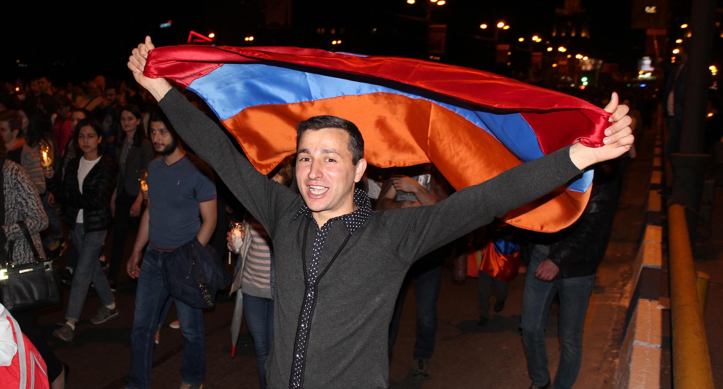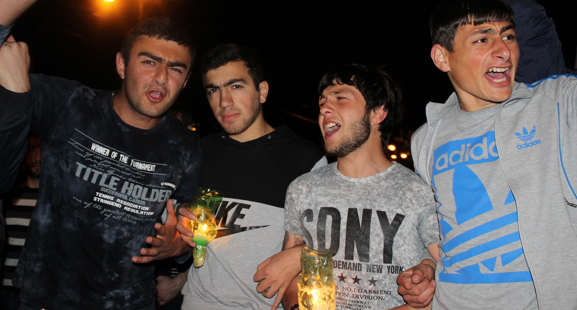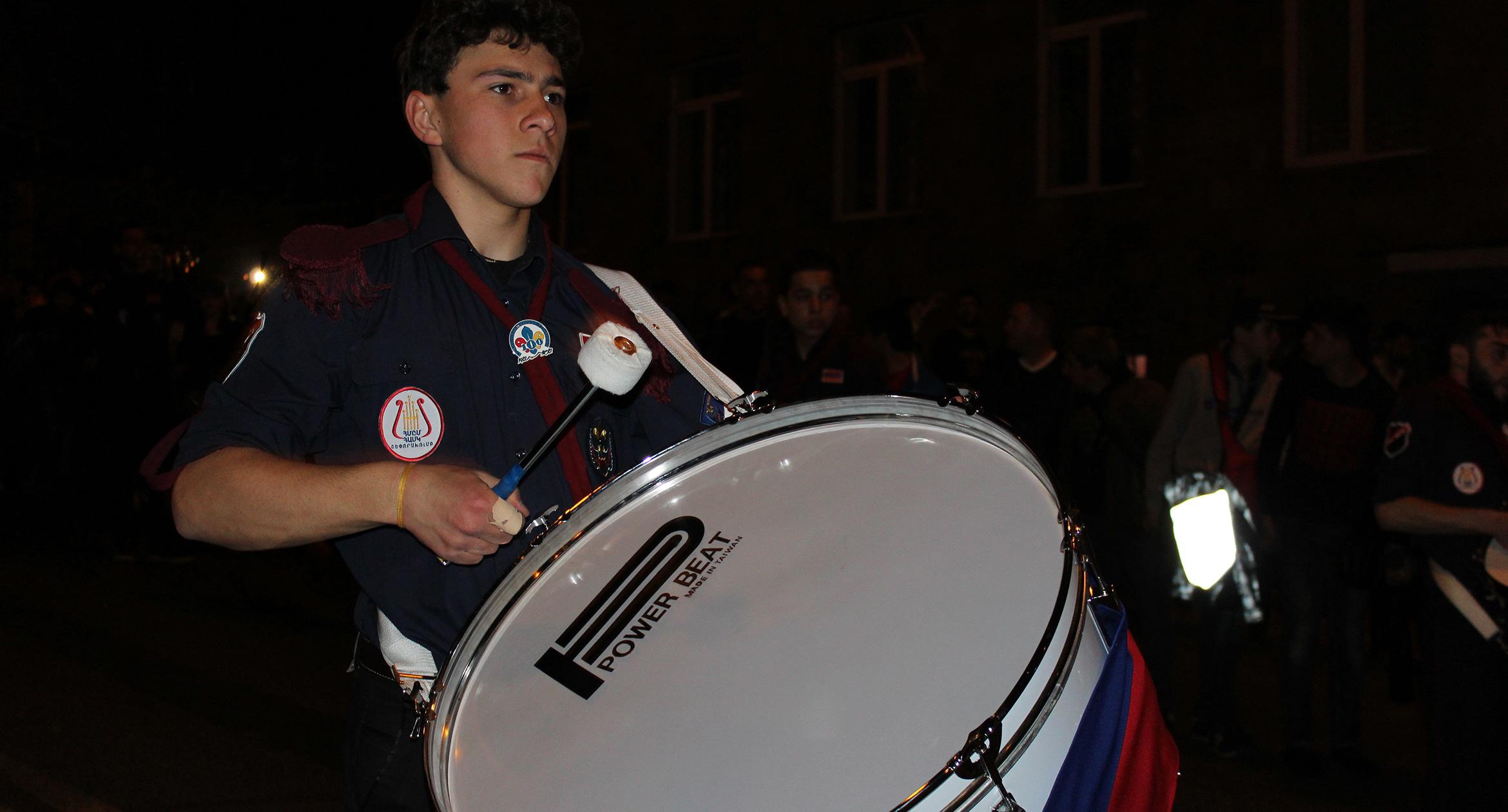 Факелы и лампады в руках участников шествия памяти геноцида армян в Ереване. 23.04.2017