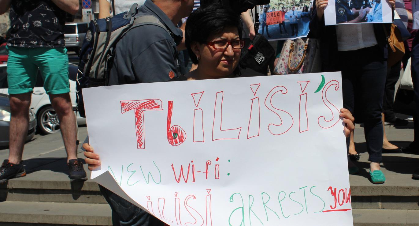 Грузинские журналисты провели акцию в поддержку коллеги из Азербайджана Афгана Мухтарлы