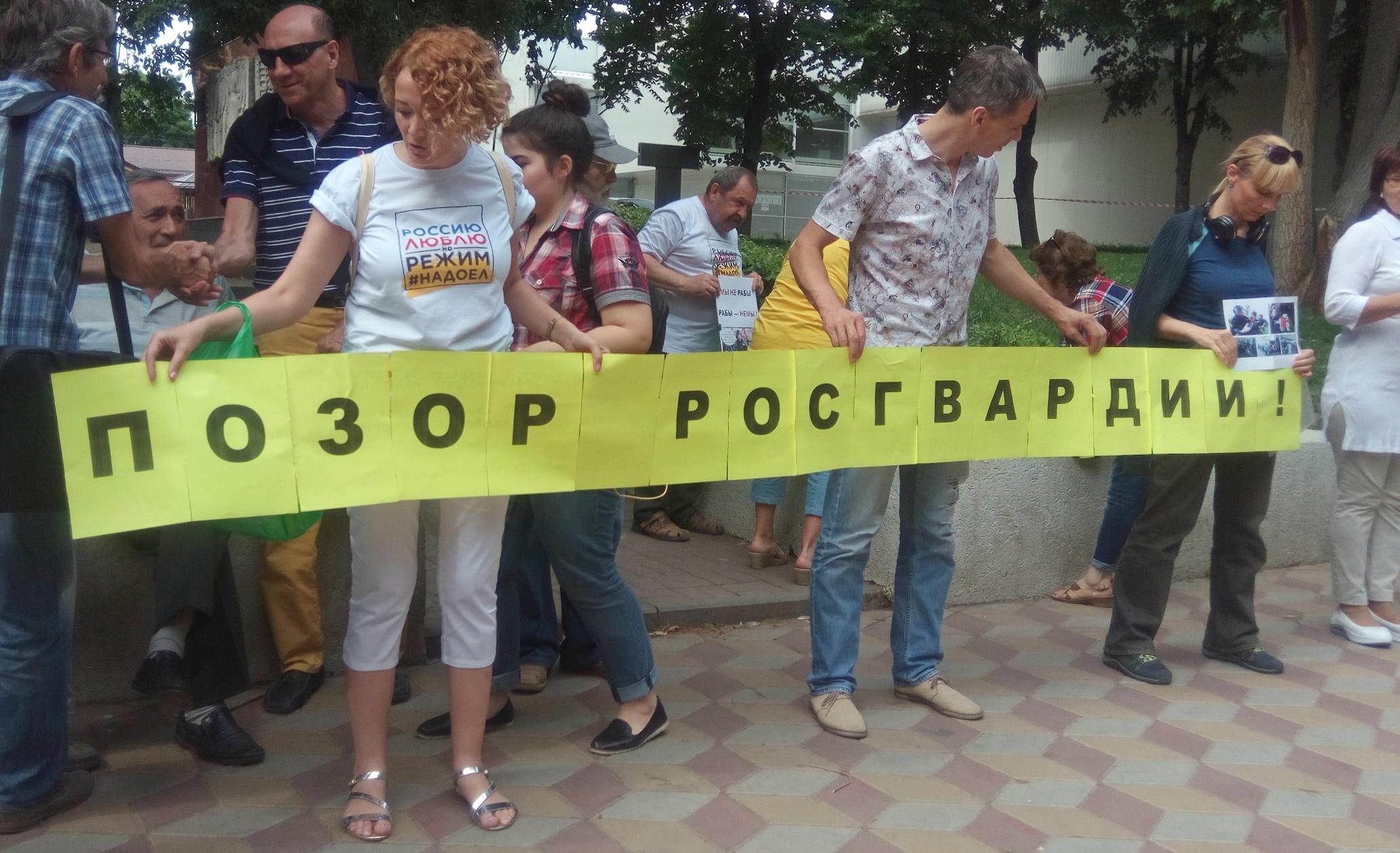 Пикет оппозиции в Ростове-на-Дону под лозунгом "Позор Росгвардии!"