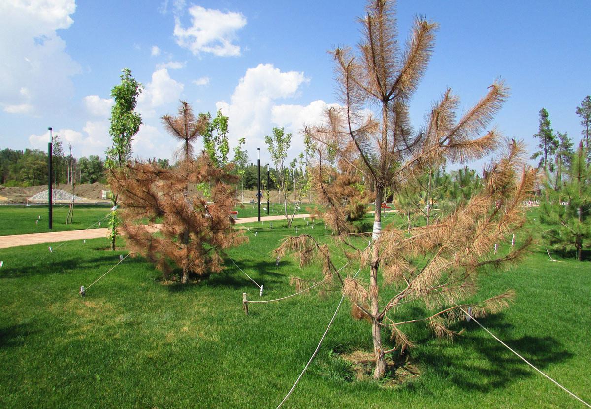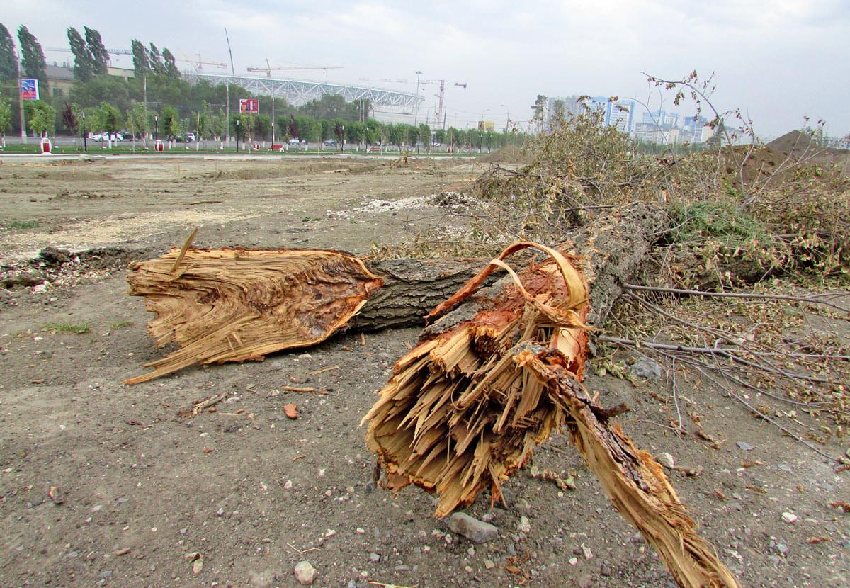 Выкорчеванные мемориальные деревья «Парка вдов»