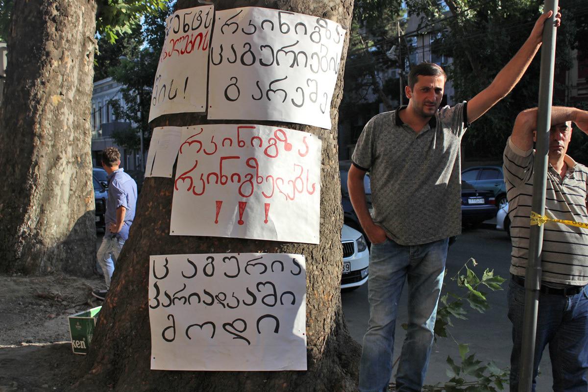 Один из участников акции солидарности с плакатом "Я не мишист. Я объявляю солидарность. Я люблю трудиться"