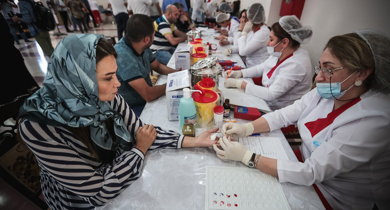 Люди пришли в мечеть Тезепир, чтобы сдать кровь.