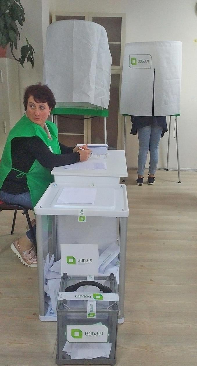 Наблюдатели и член комиссии избирательного участка №71 в Тбилиси