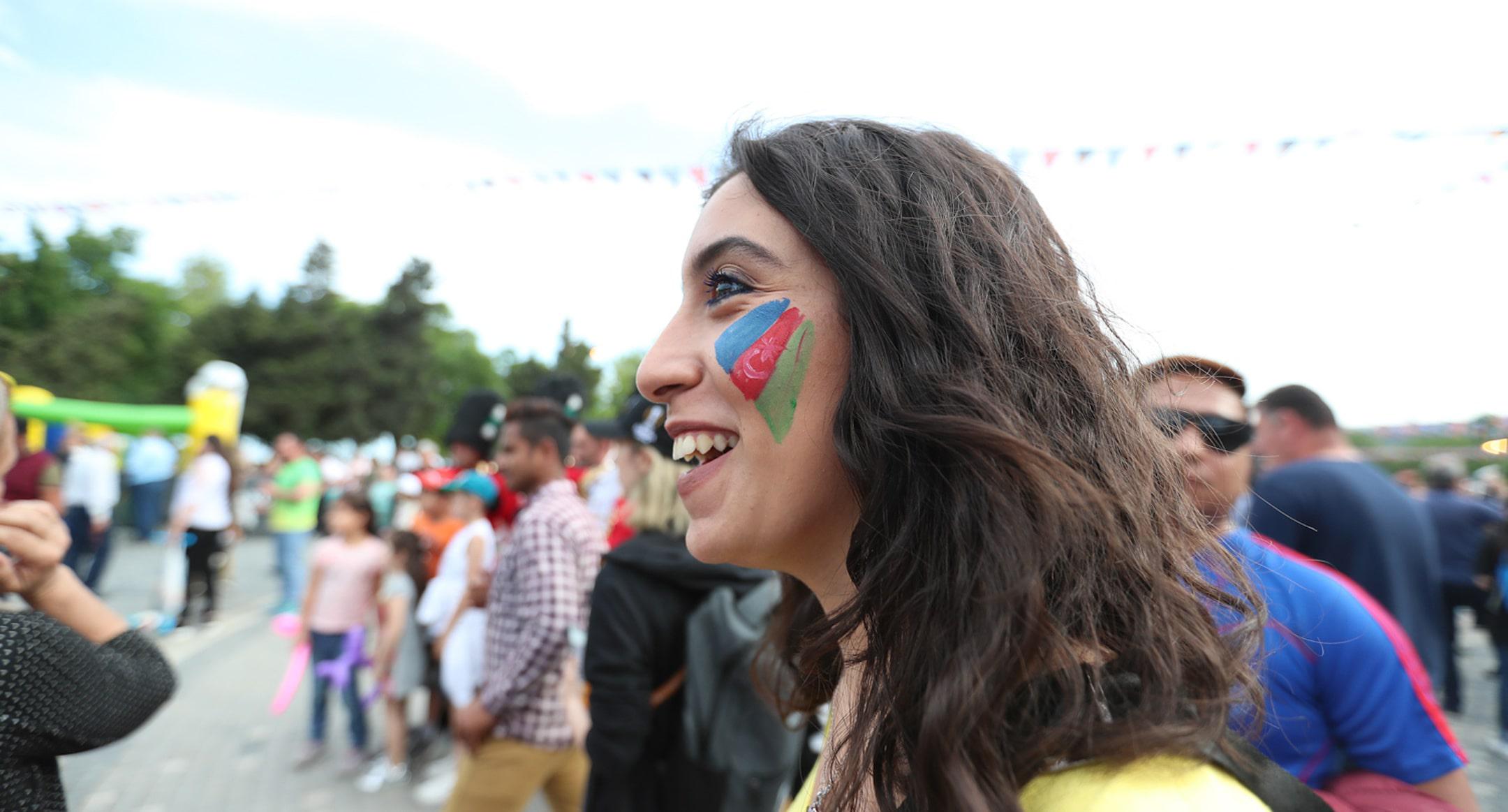 Болельщица с азербайджанским флагом на лице