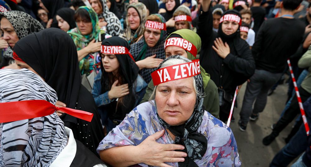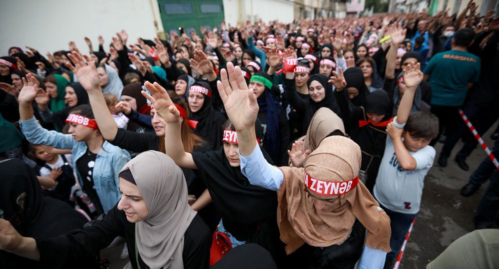 Церемония сопровождается возгласами: "Шах Хусейн! Вах, Хусейн!" (Царь Хусейн! О, Хусейн!)
