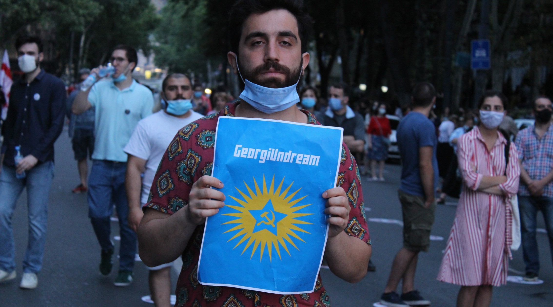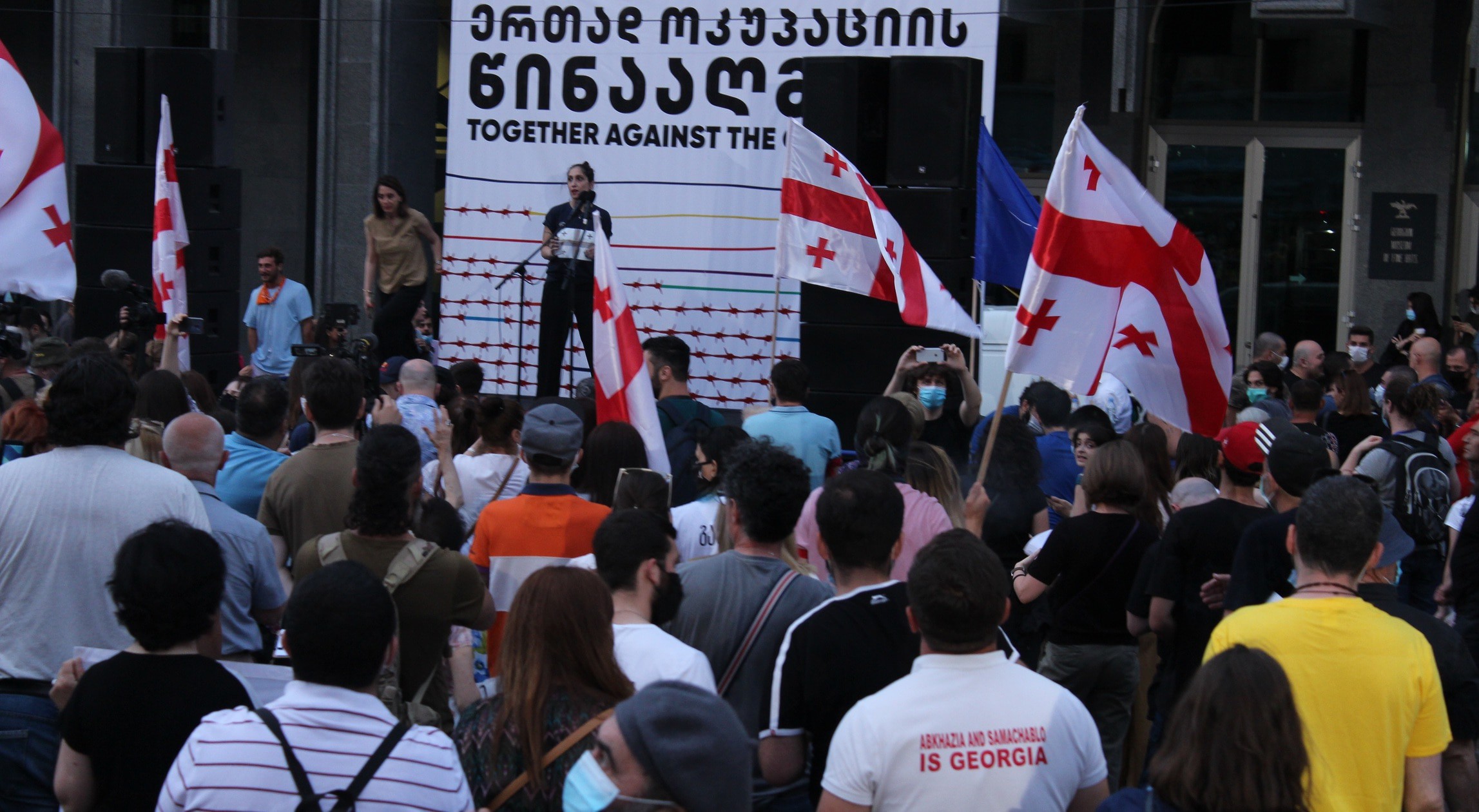 На руке между большим и указательным пальцами татуировка с надписью "Грузия" и изображением контура ее границ