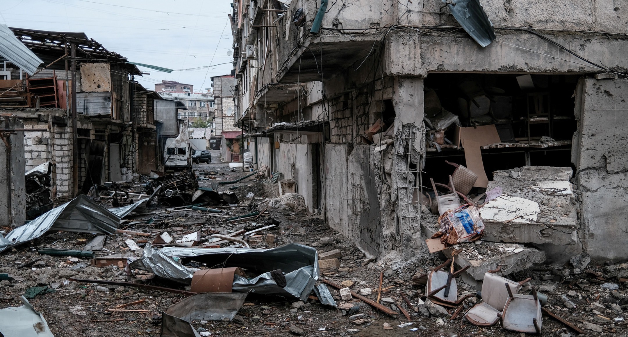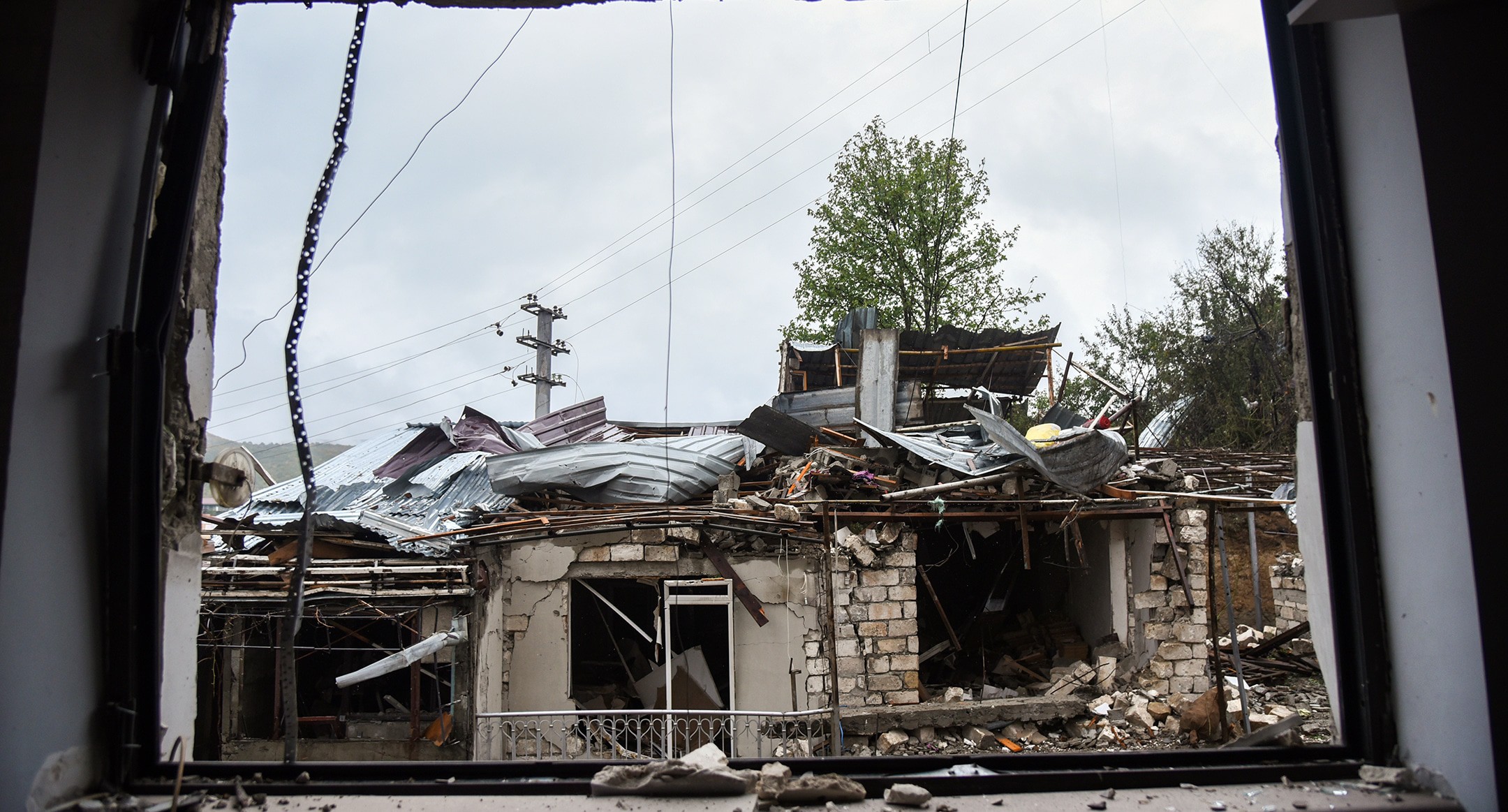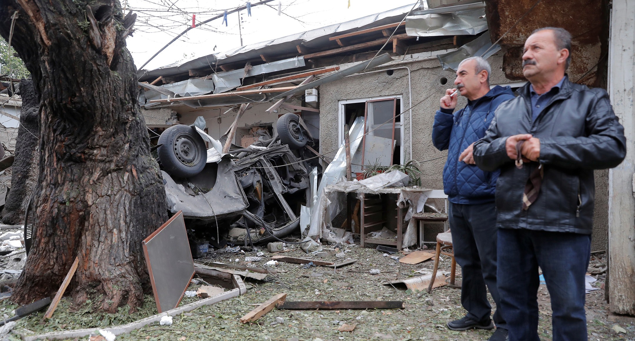 Последствия обстрела в Степанакерте 5 октября 2020 года. Areg Balayan/ArmGov/PAN Photo/Reuters