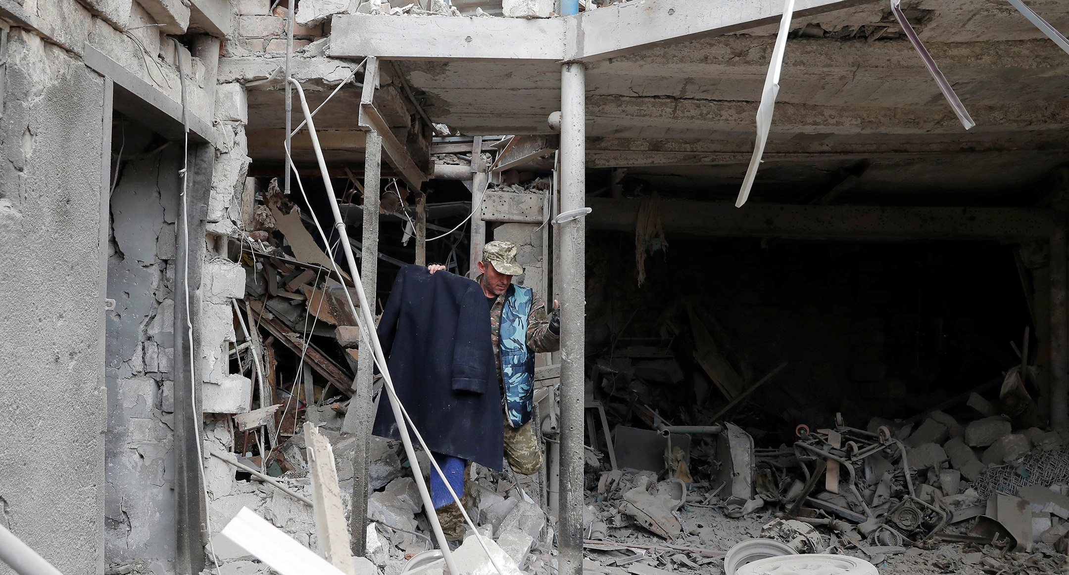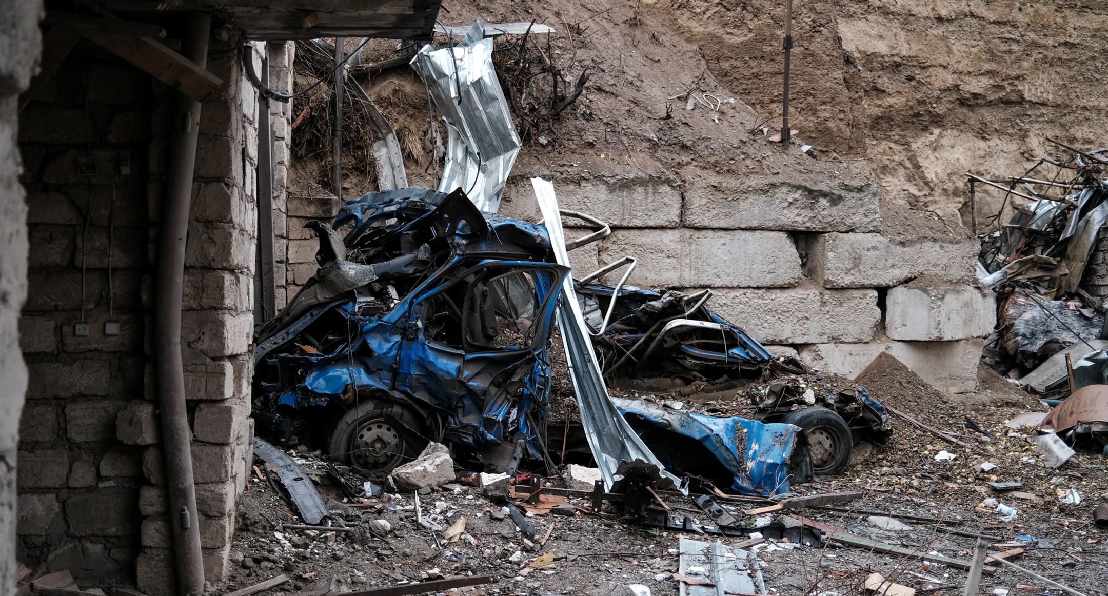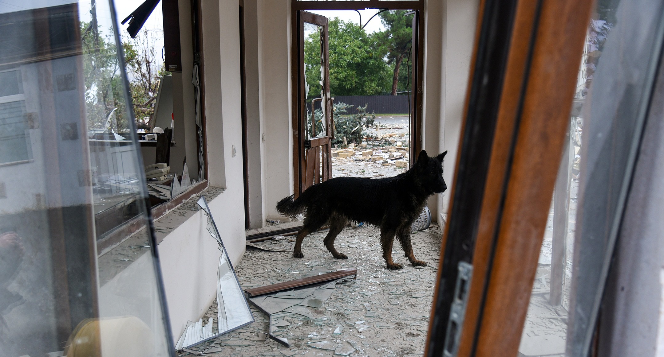 Последствия обстрела в Степанакерте 5 октября 2020 года. Areg Balayan/ArmGov/PAN Photo/Reuters