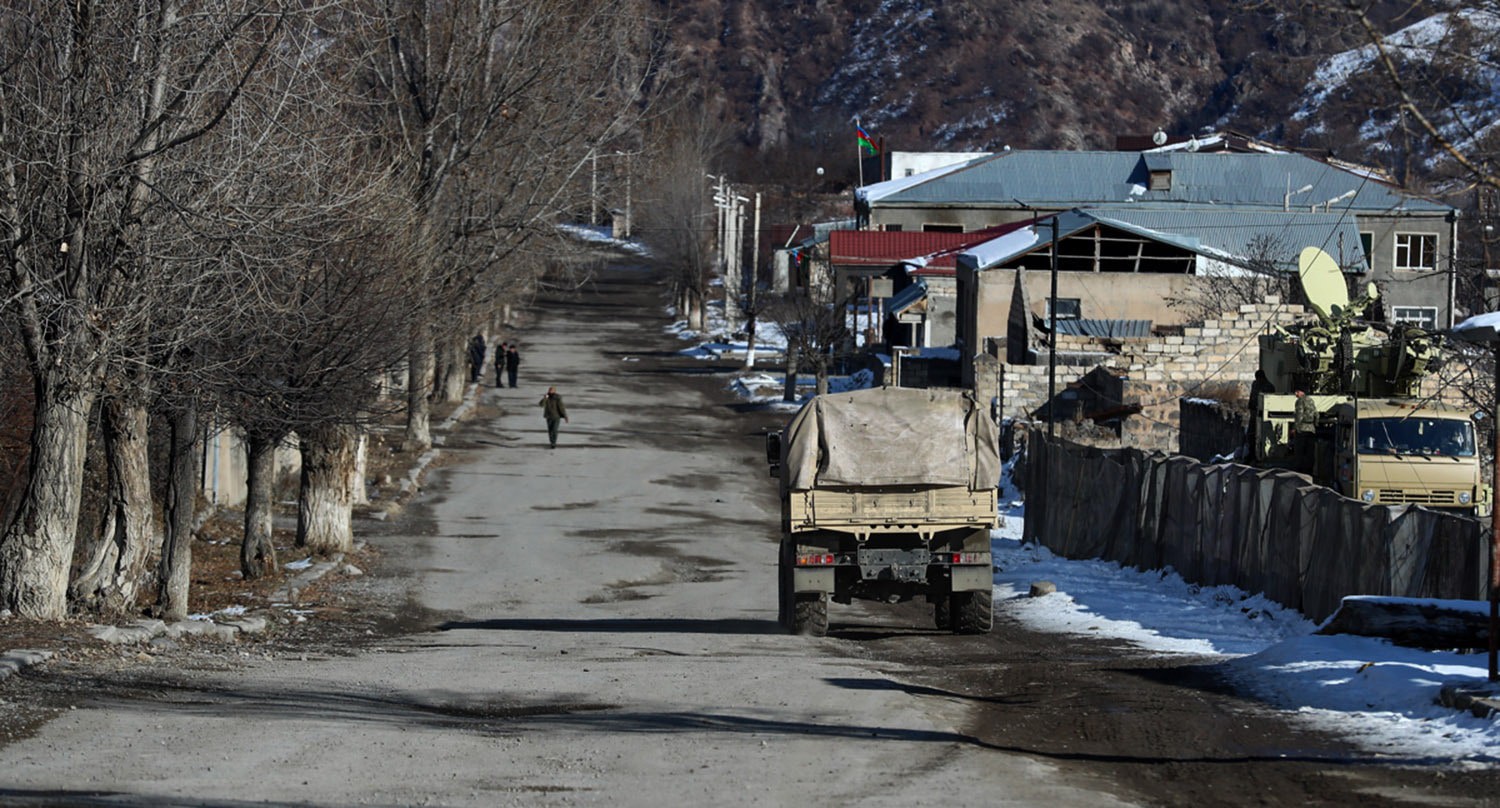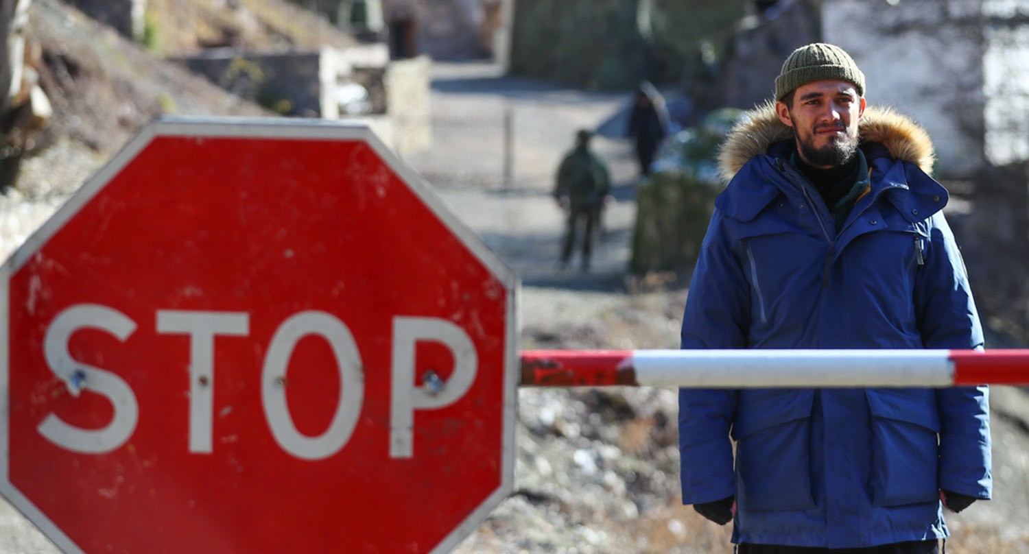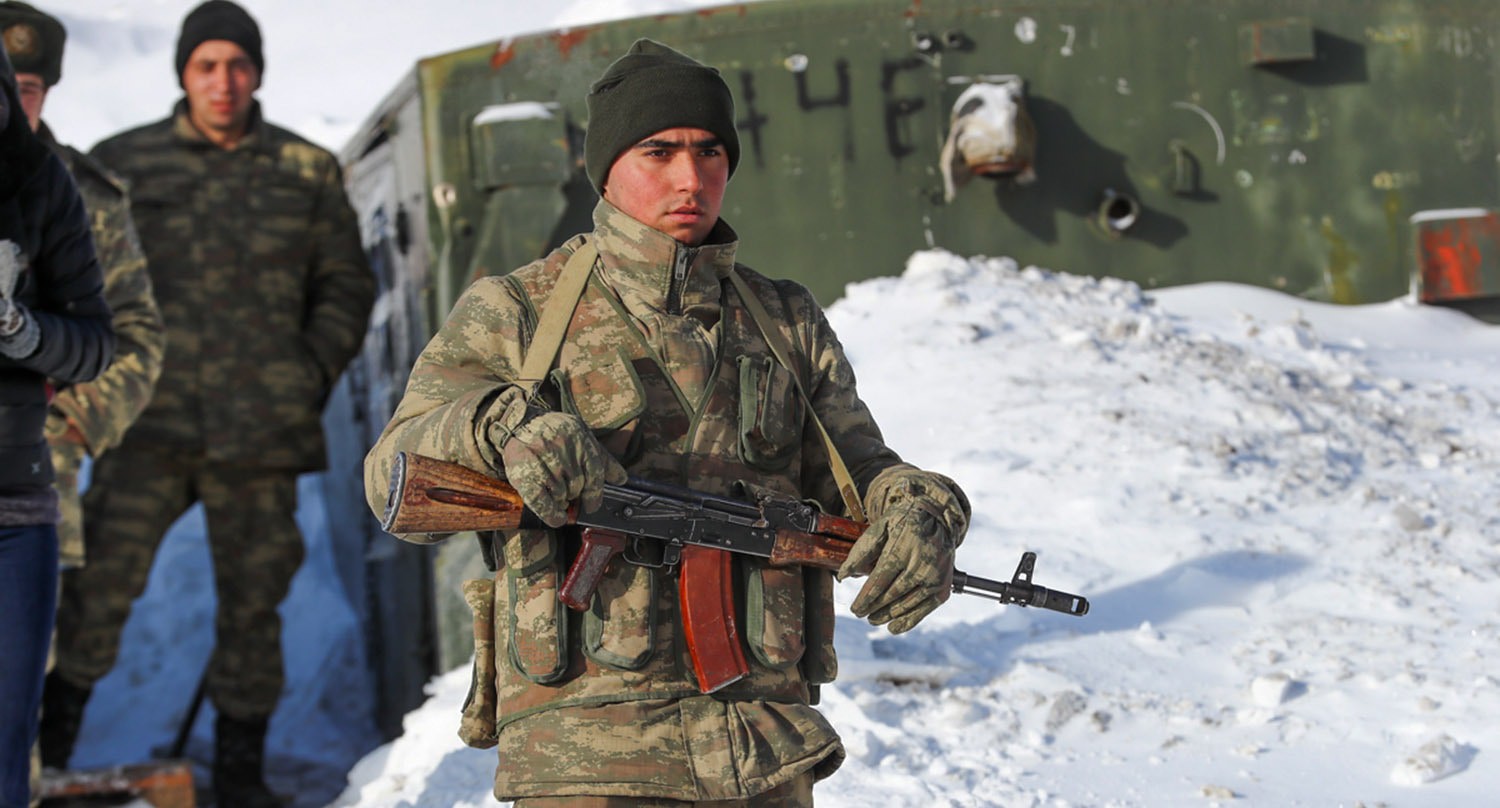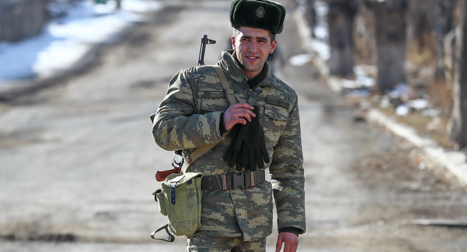 Солдат у поста по дороге в Кельбаджар