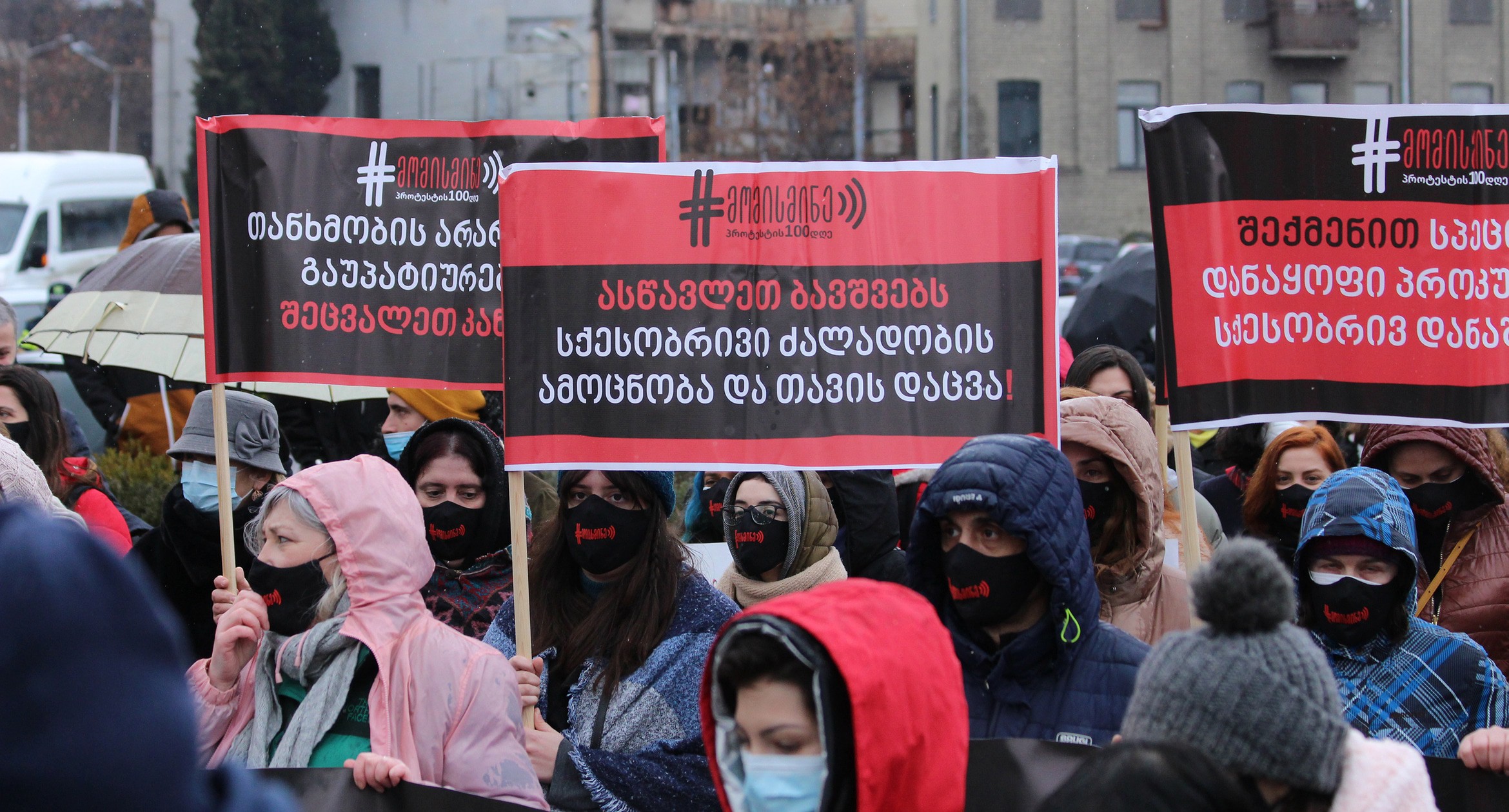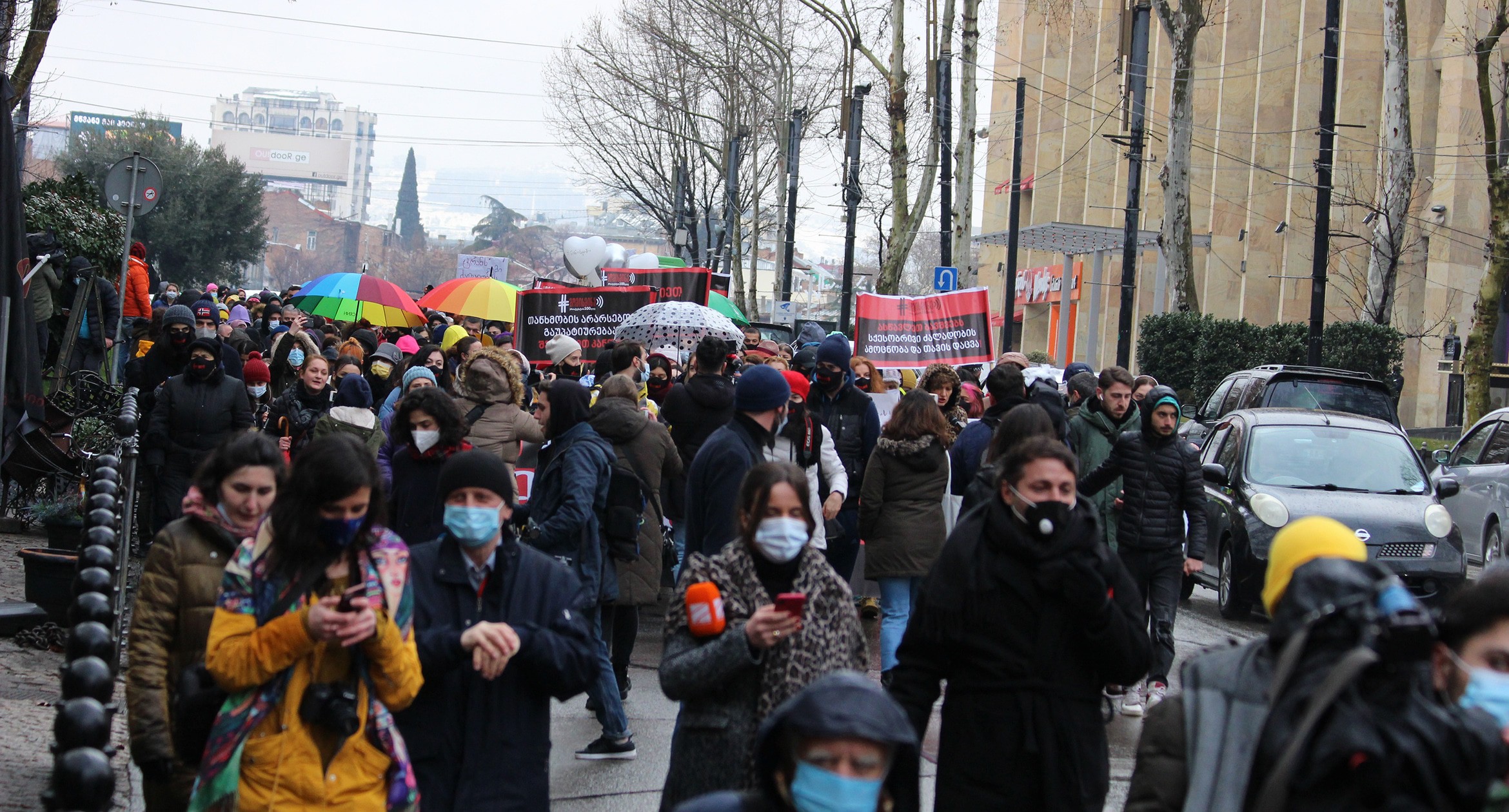 Акция в Тбилиси началась с шествия по центральному проспекту Руставели и завершилась перед зданием администрации правительства Грузии