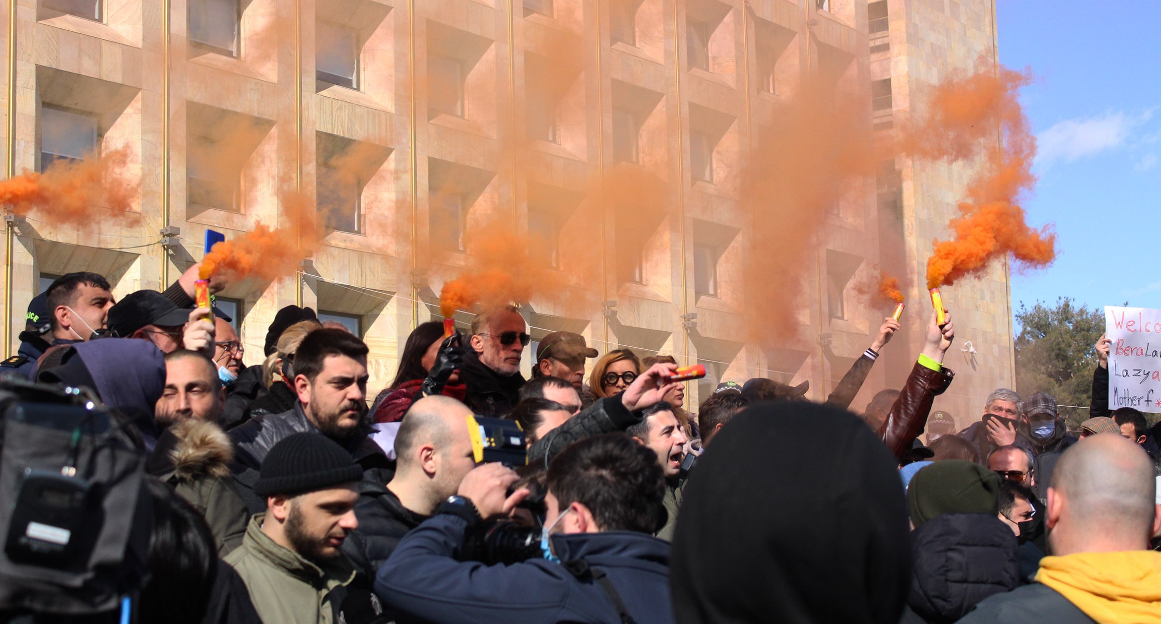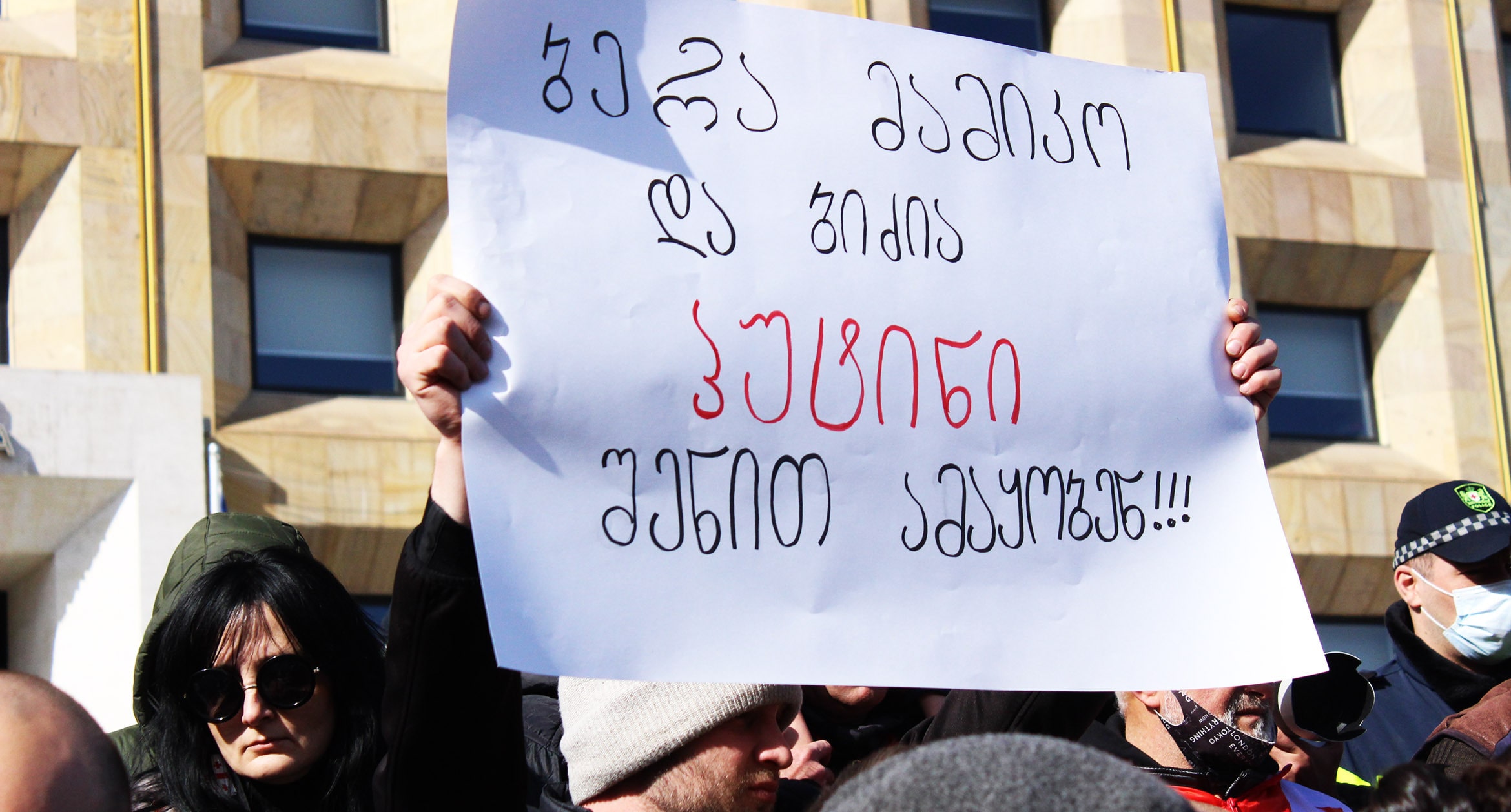 Акция протеста с требованием отставки Ираклия Гарибашвили прошла перед зданием правительства Грузии