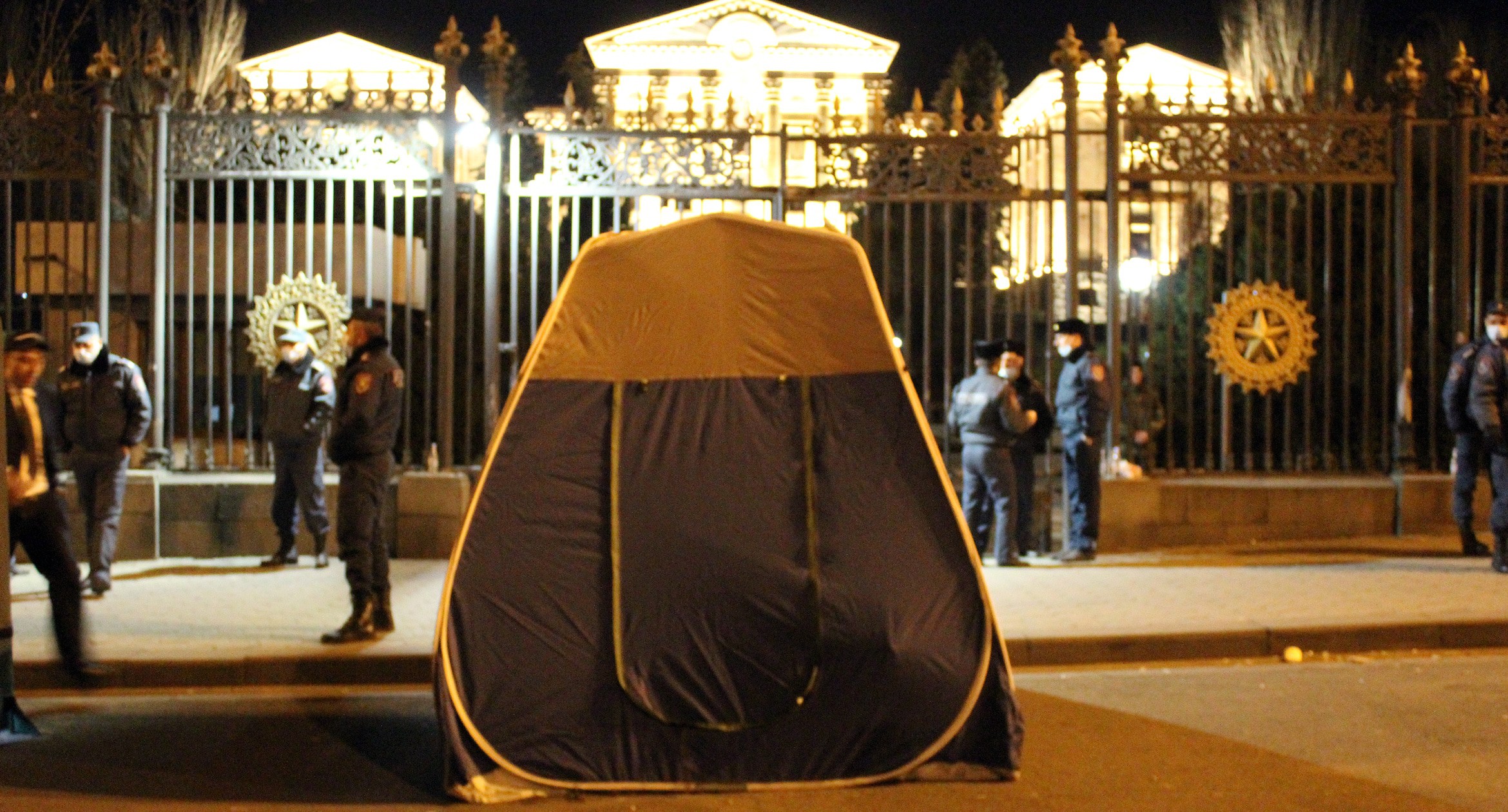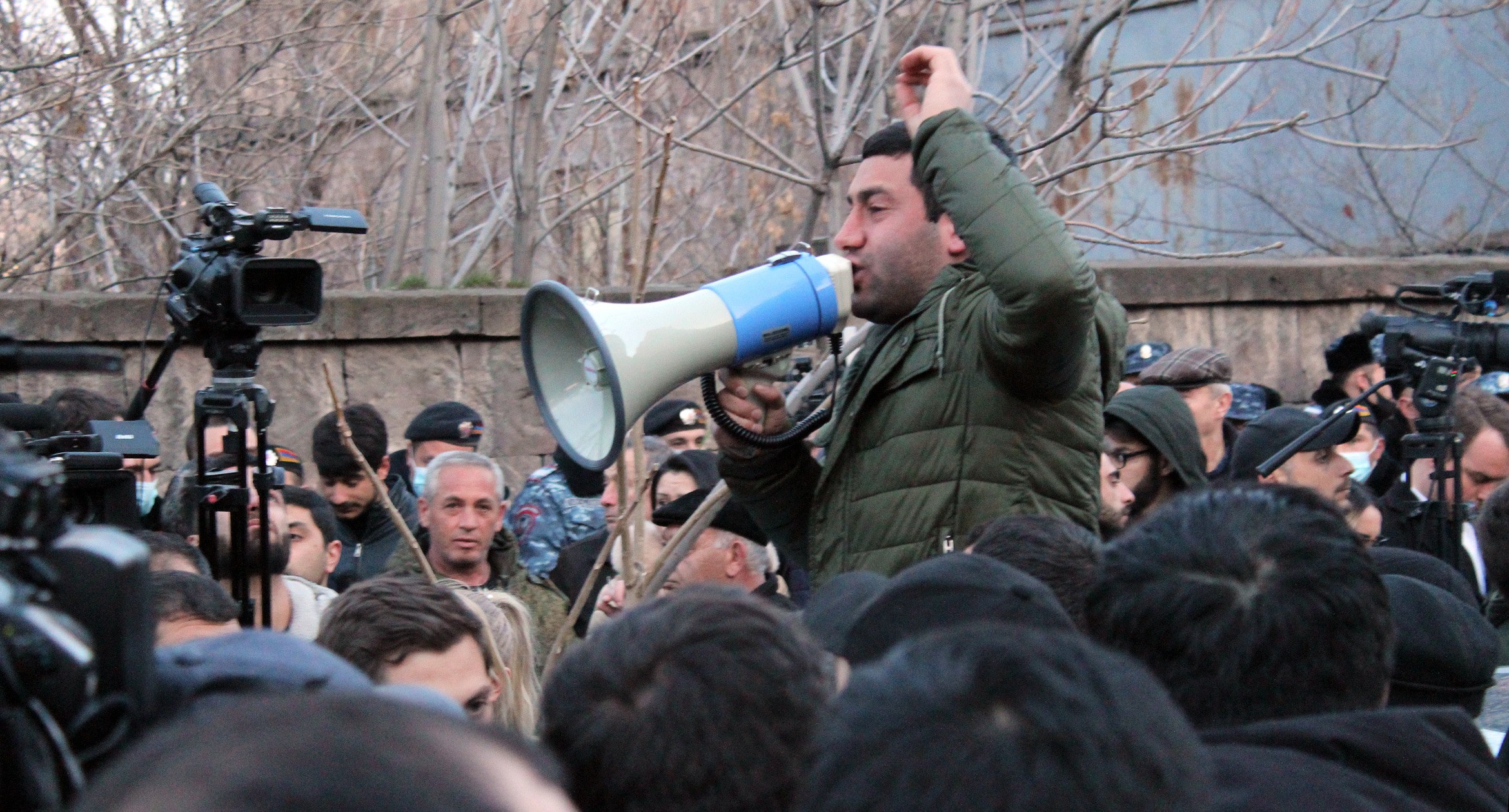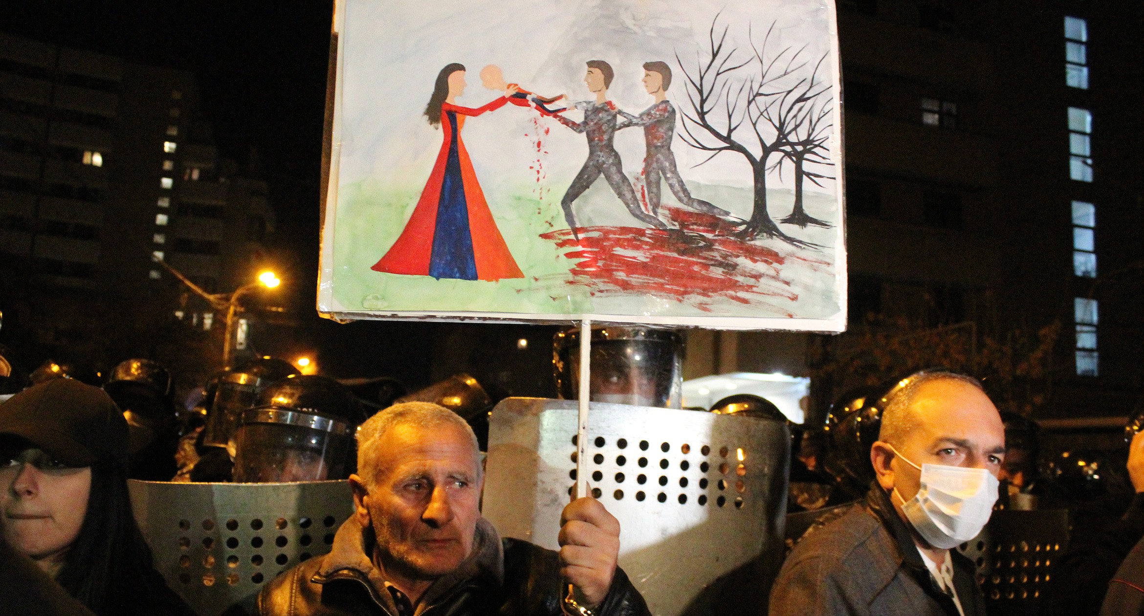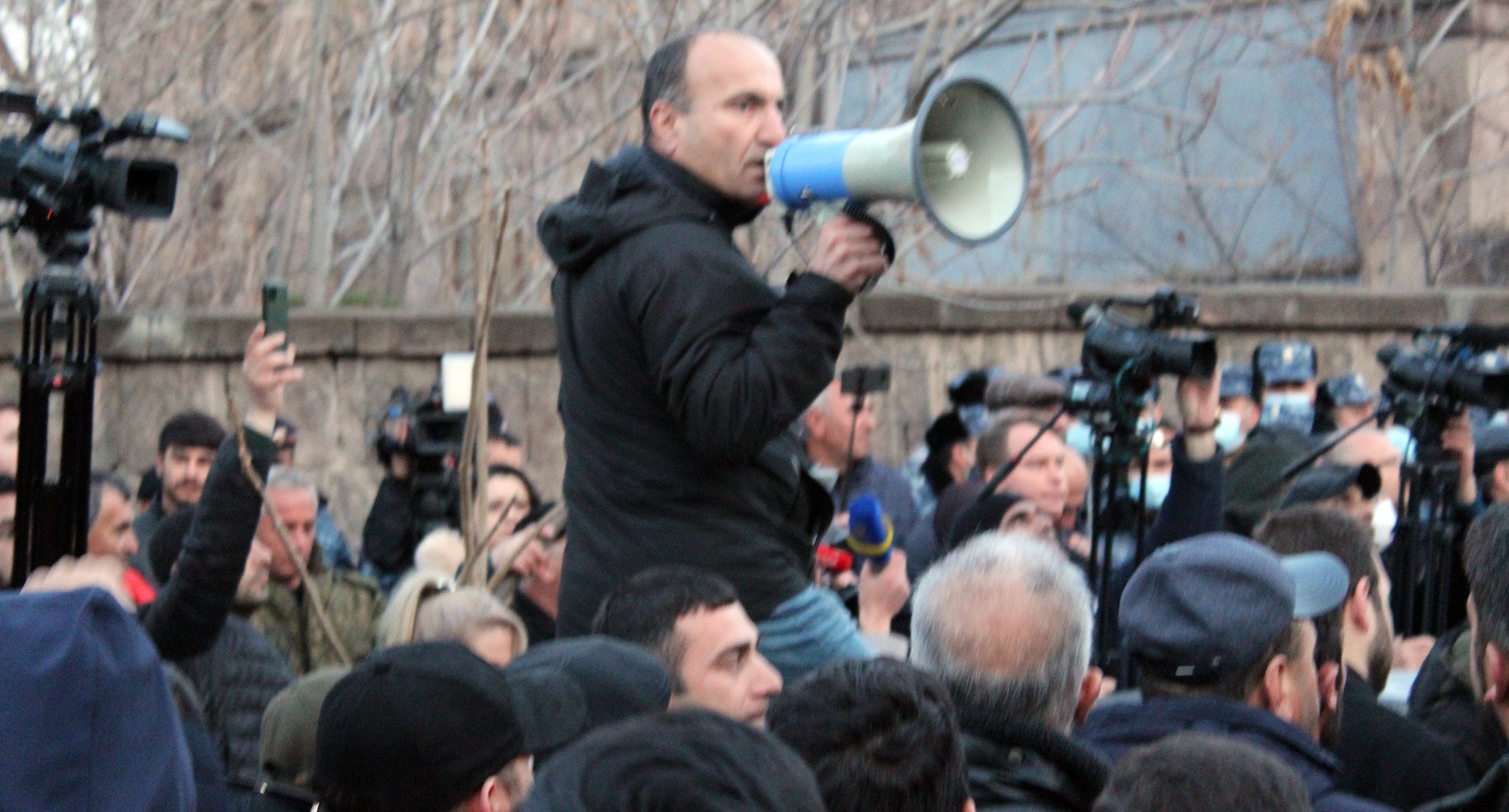 Надпись на листовках с изображением Пашиняна: "Отдавший земли!"