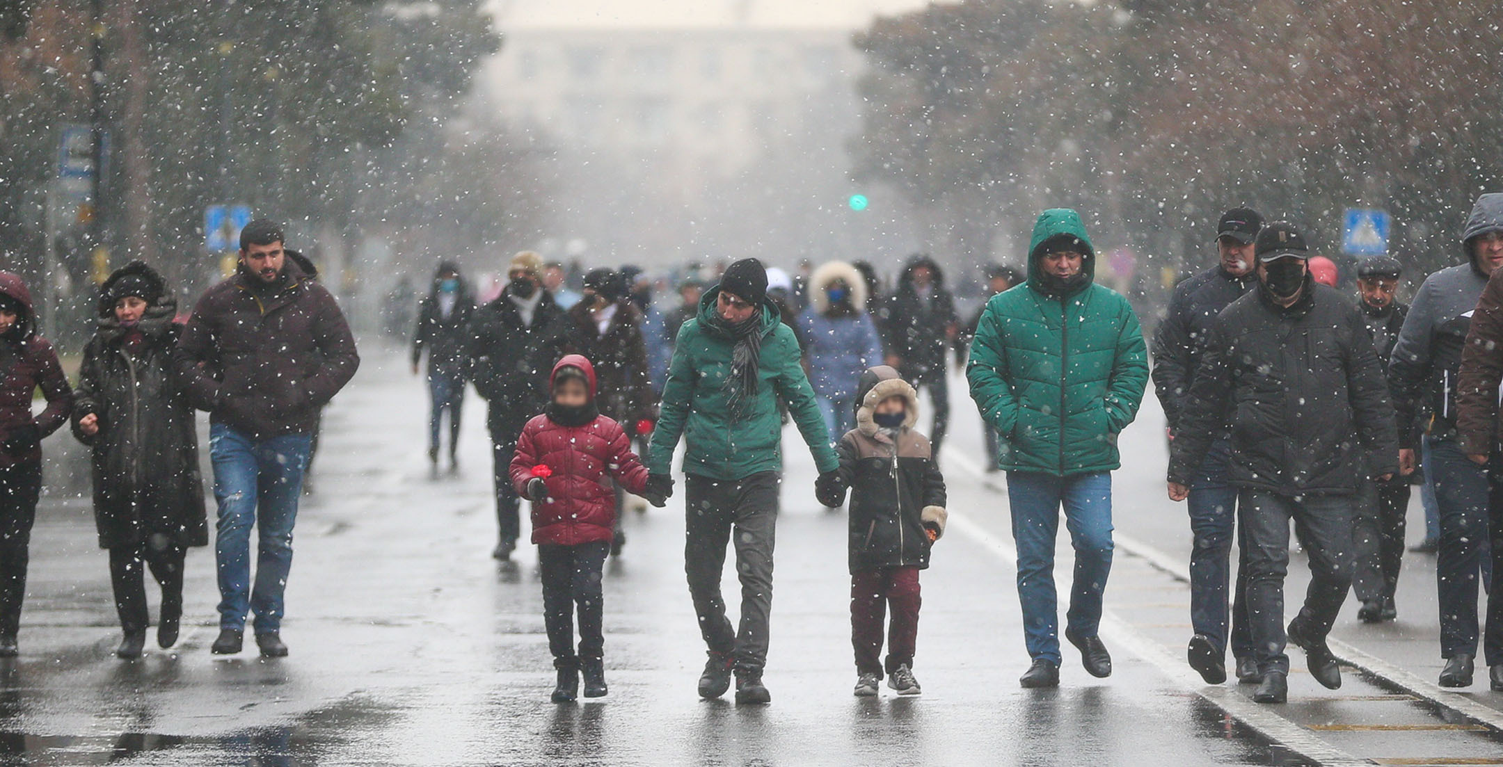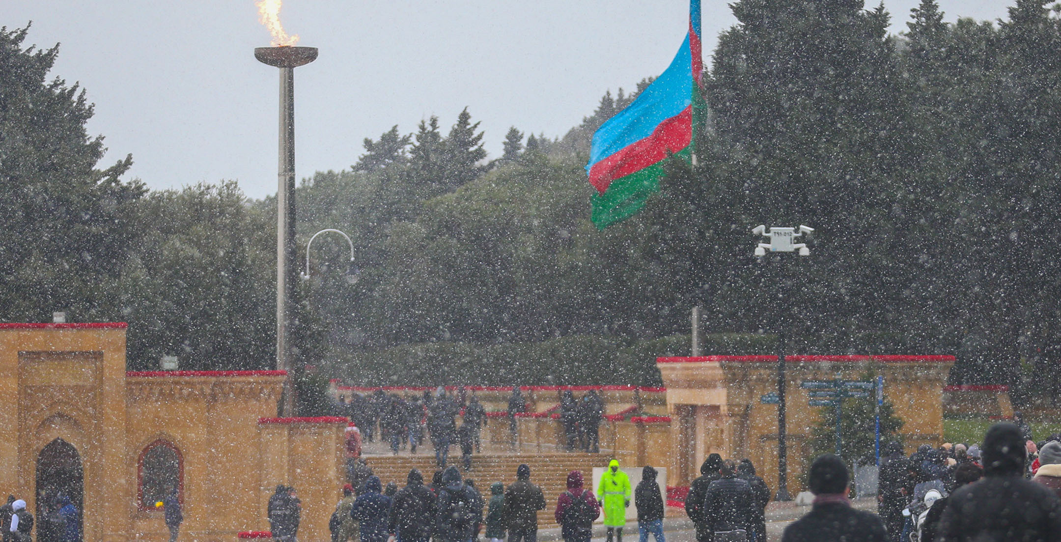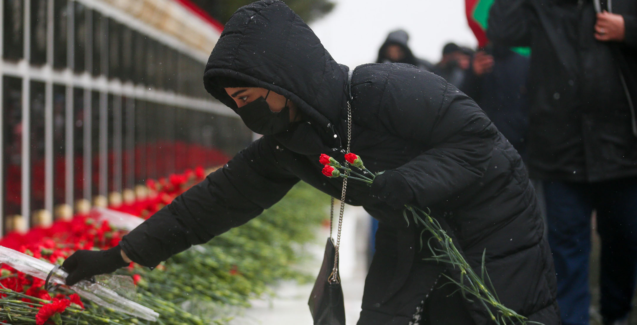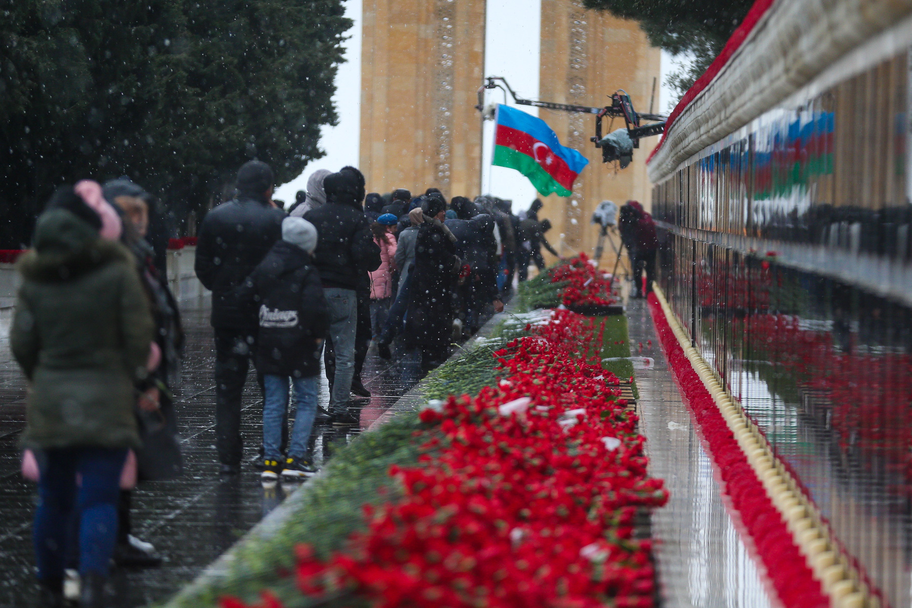 С утра началось массовое шествие на Аллею шехидов с целью почтить память жертв «Черного января»
