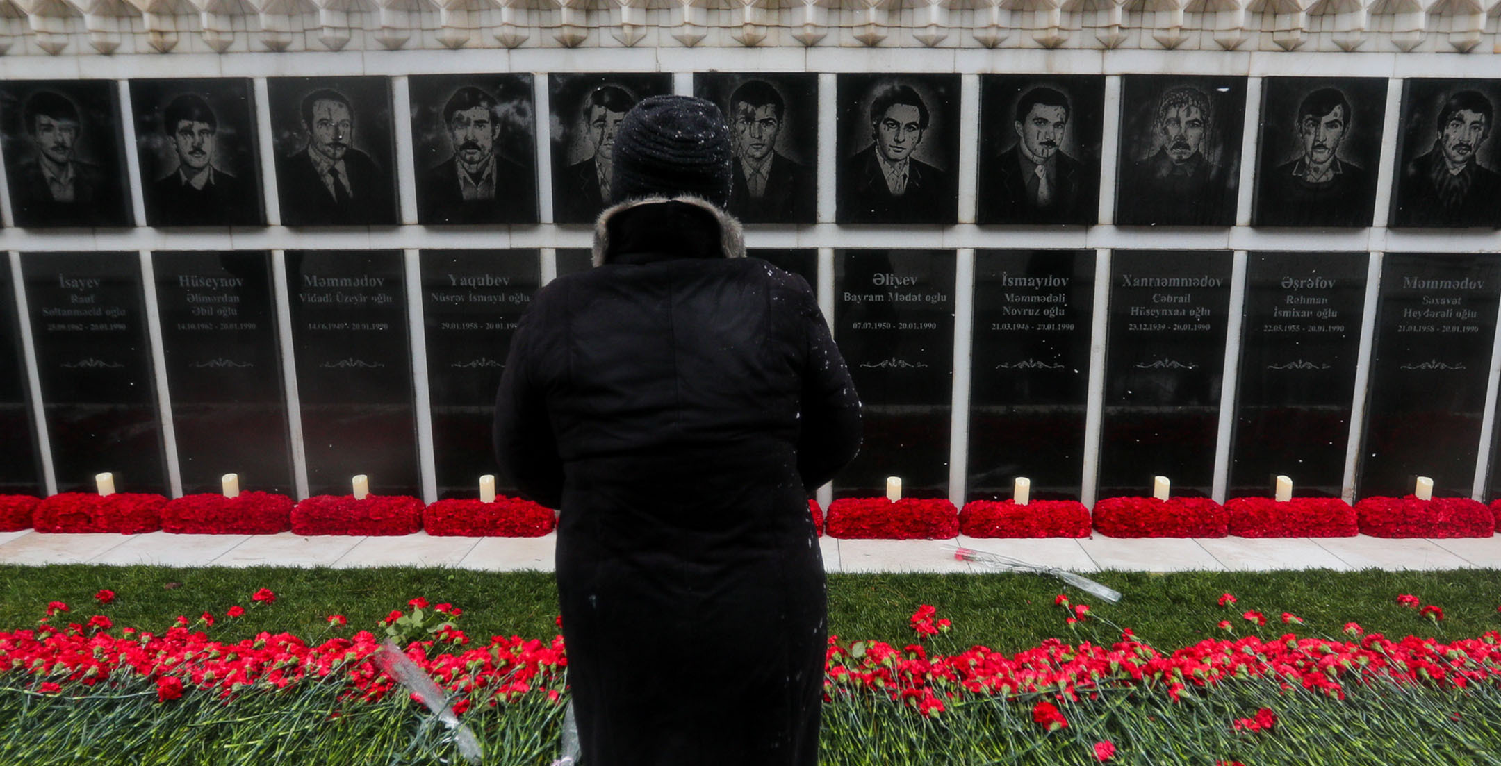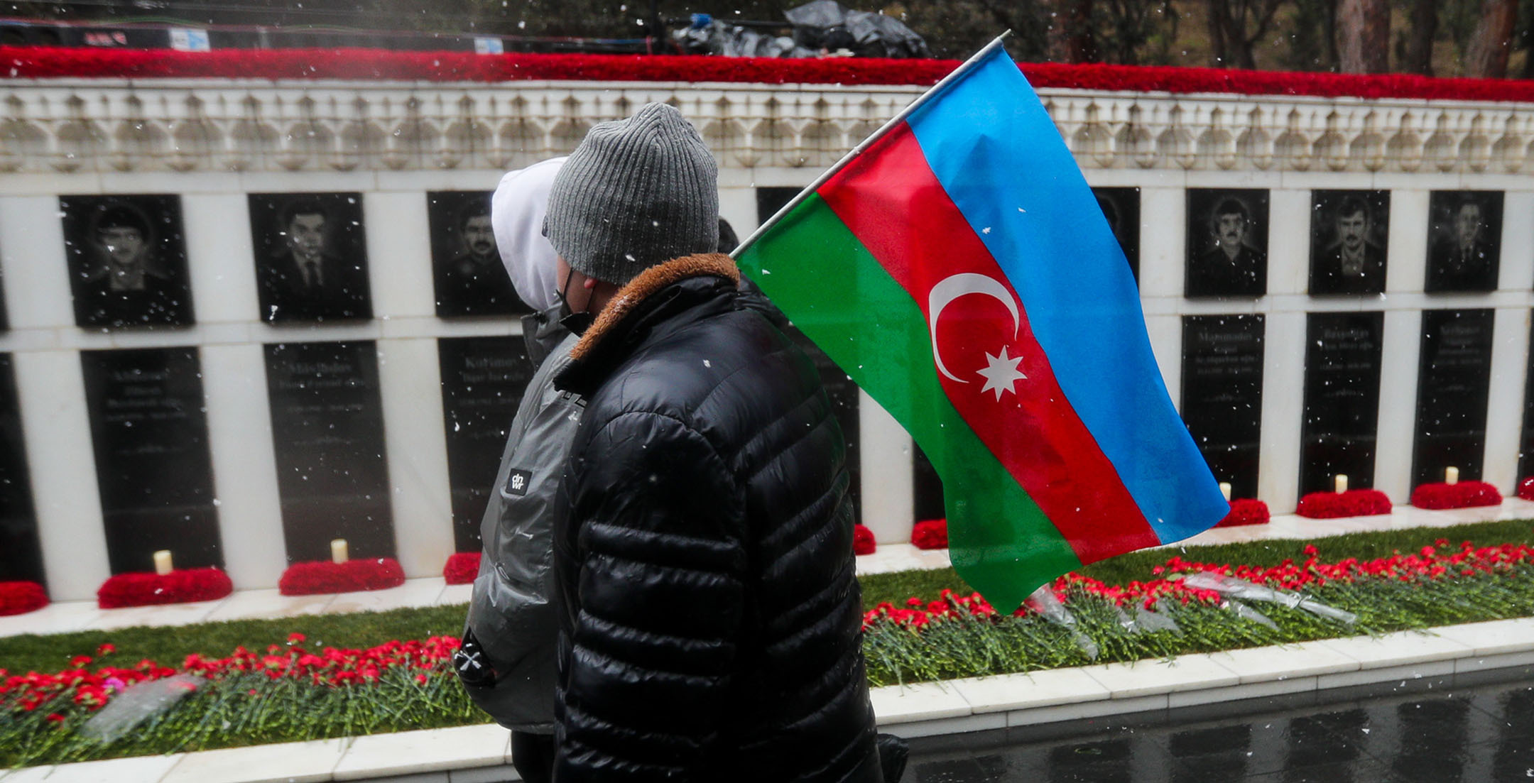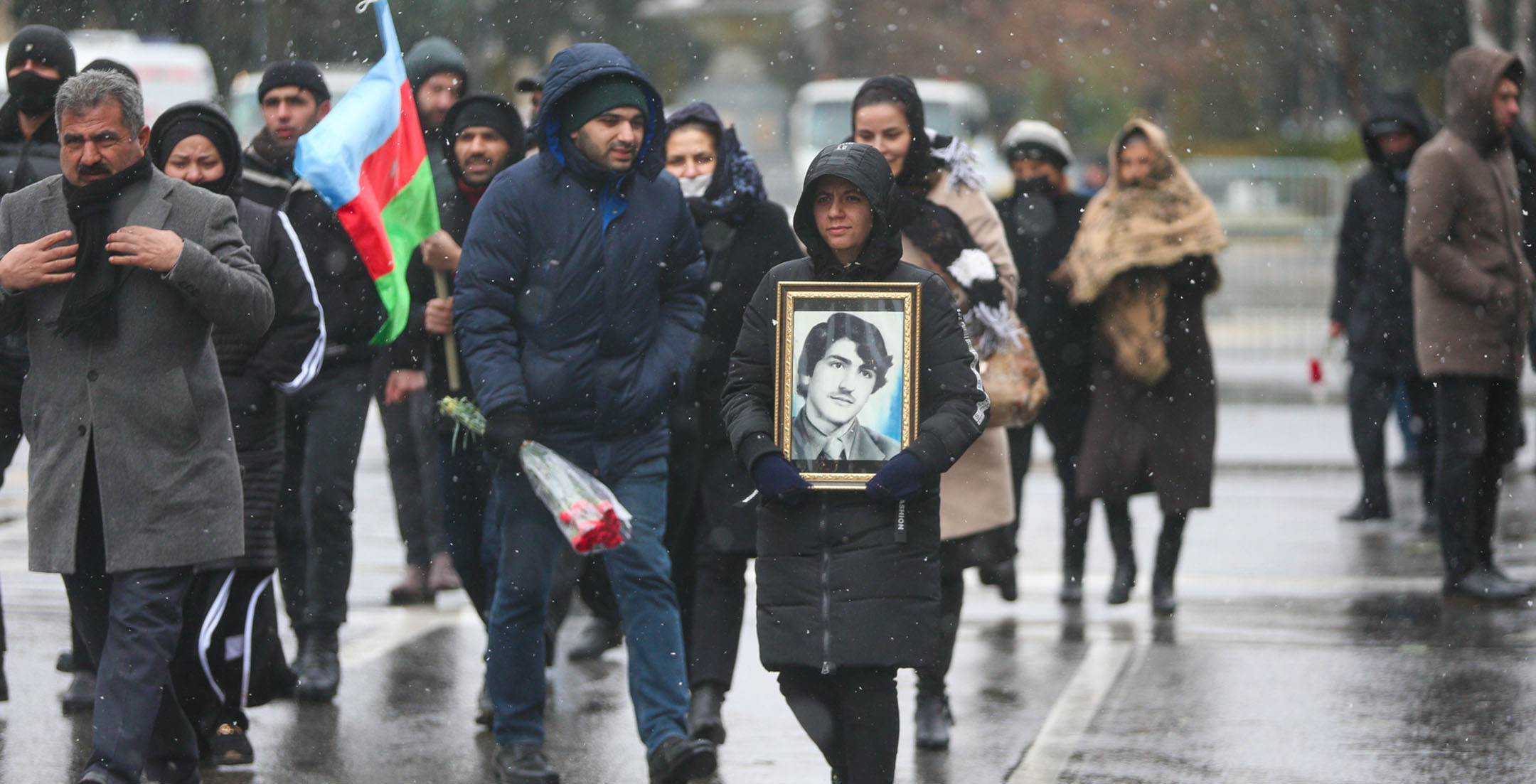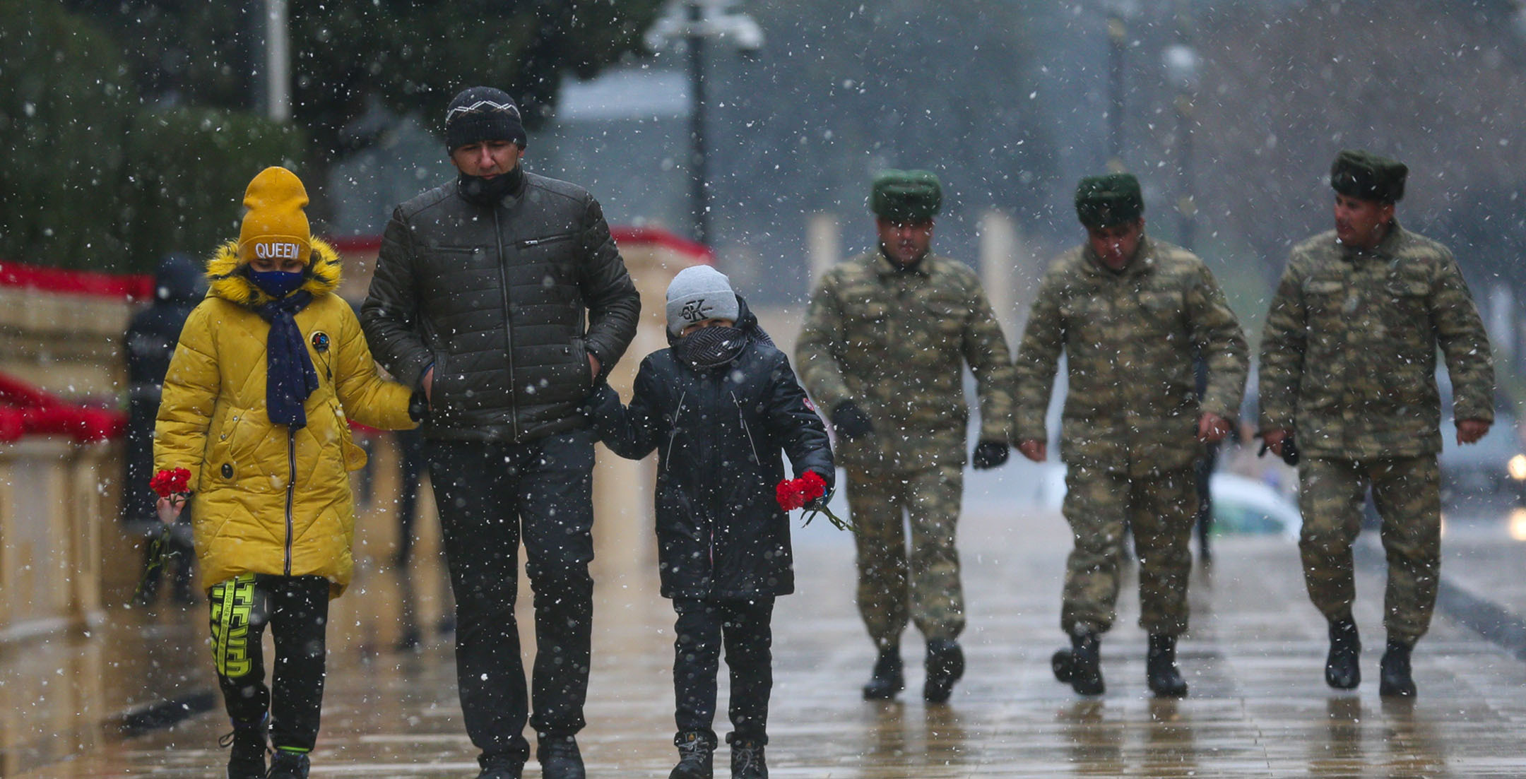 С утра началось массовое шествие на Аллею шехидов с целью почтить память жертв «Черного января»