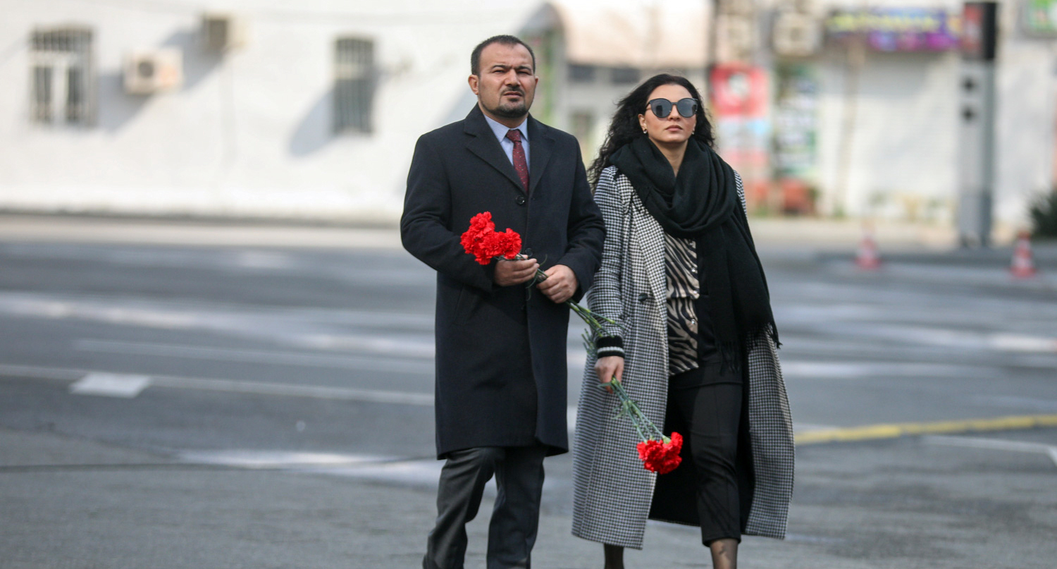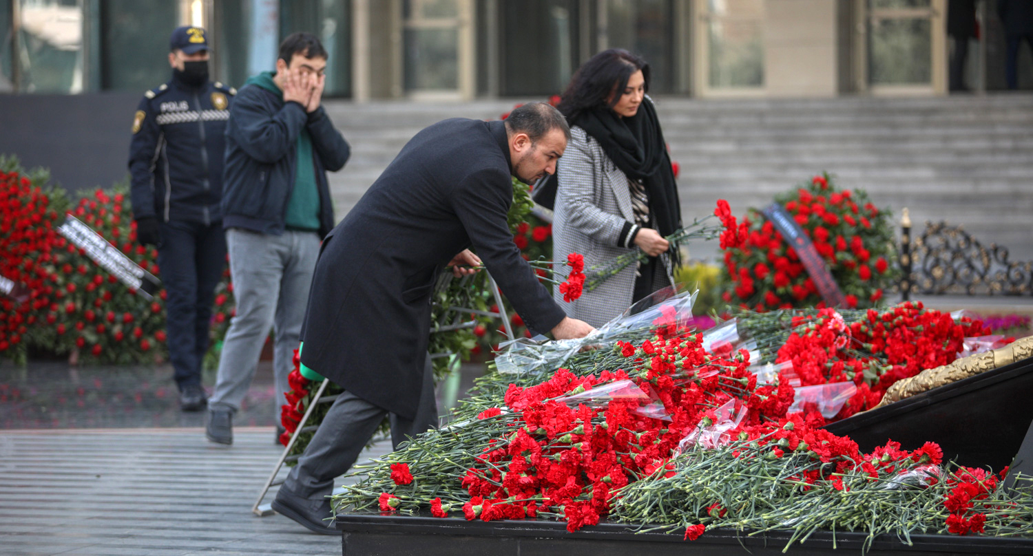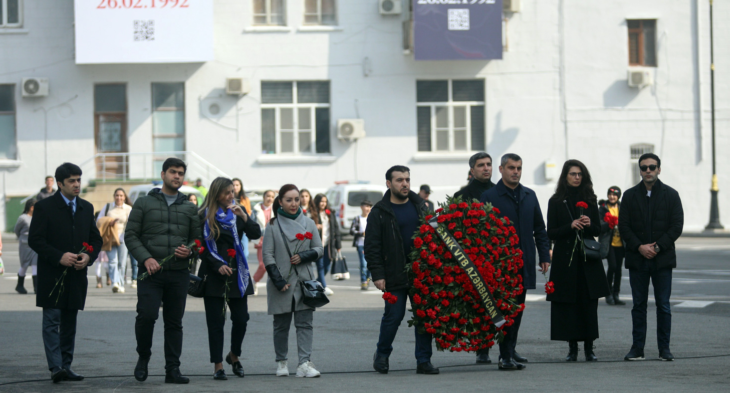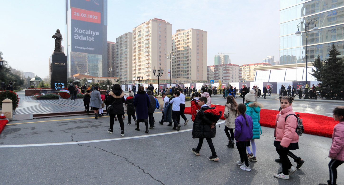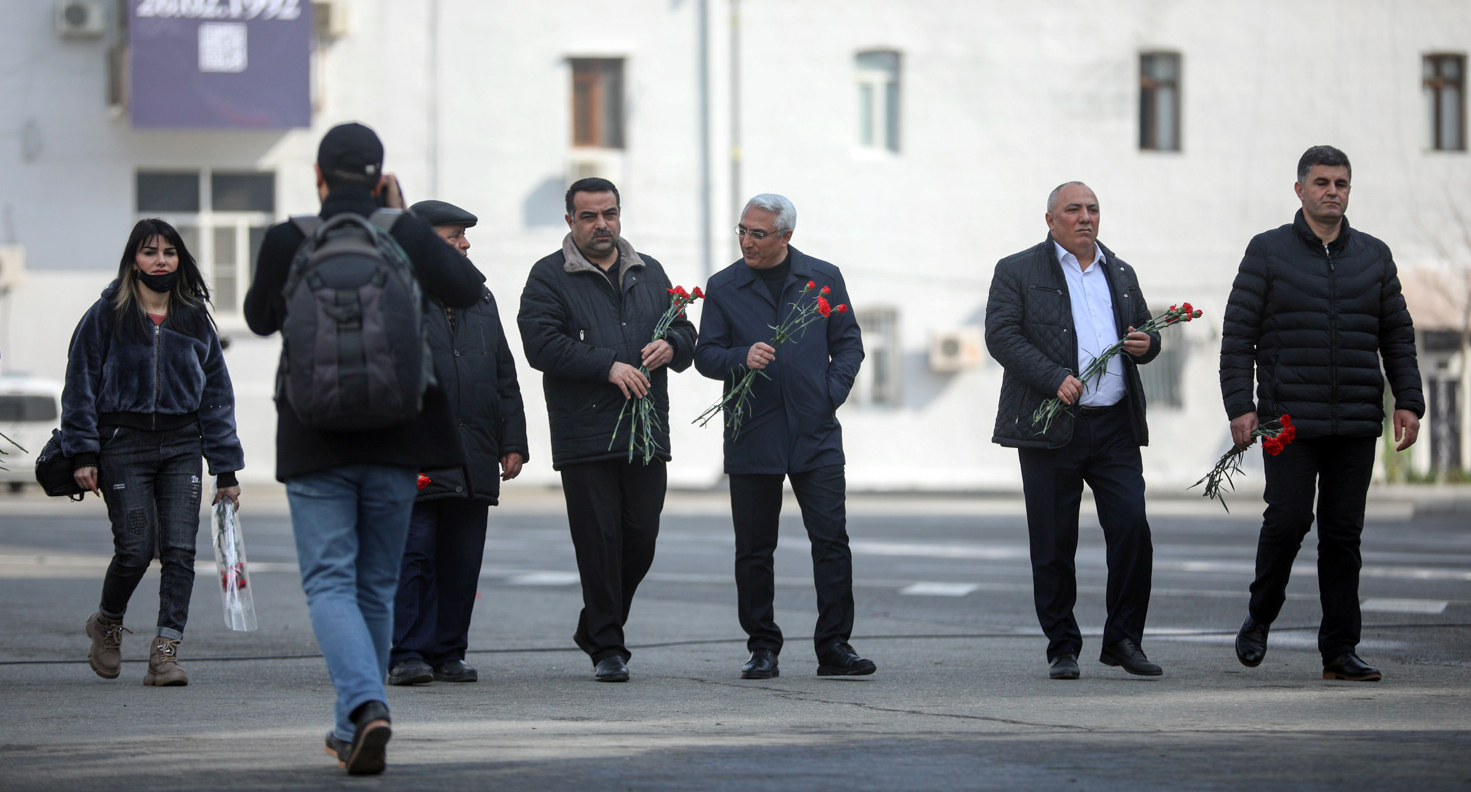 Жители Баку возлагают цветы к мемориалу погибшим в 30-ю годовщину Ходжалинской трагедии.