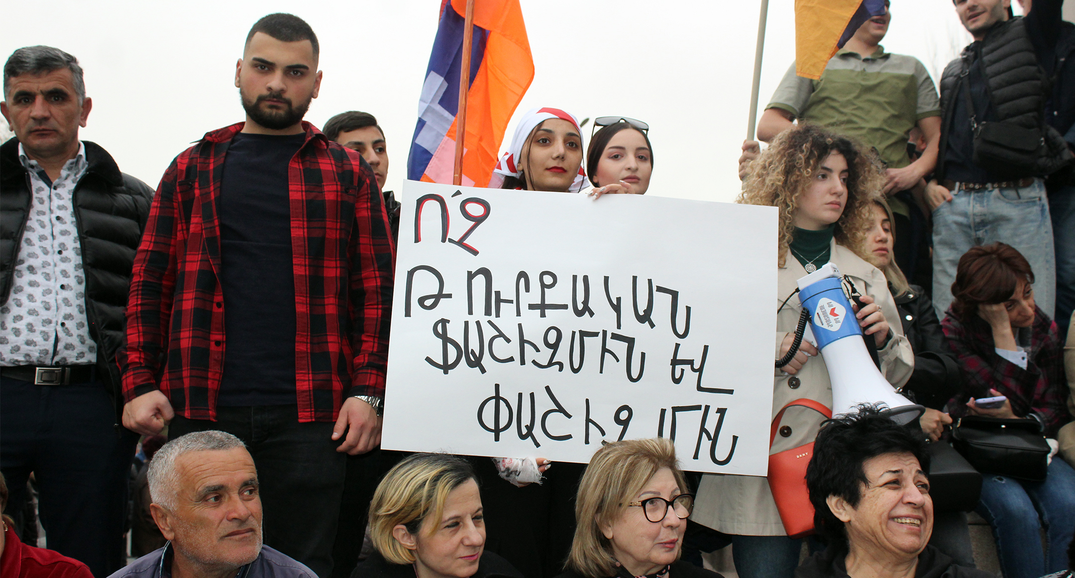 Участники акции с плакатом "Нет турецкому фашизму и Пашизму".
