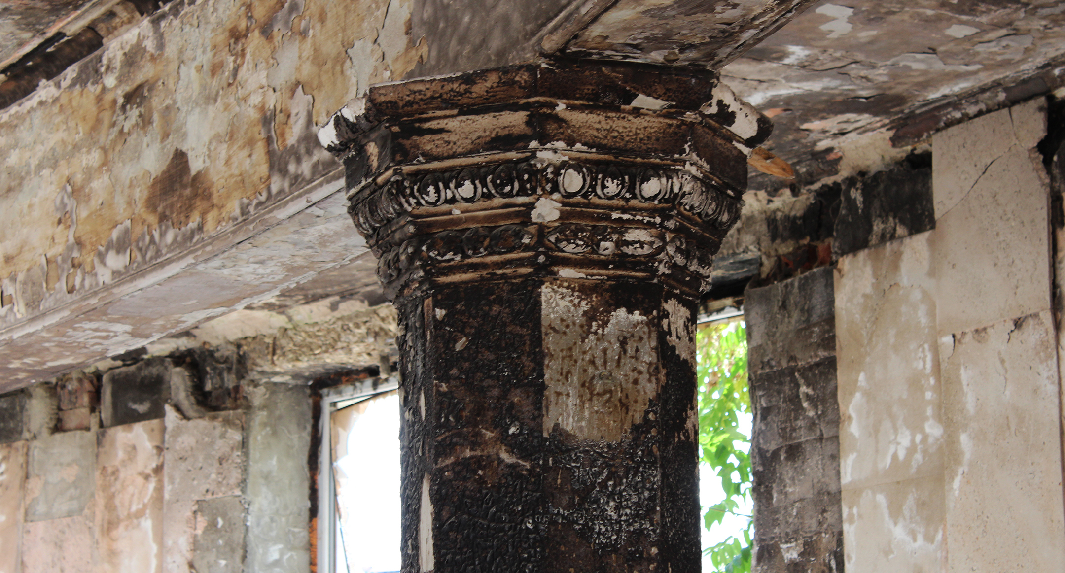 В заднии отчетливо видны следы от пожара, произошедшего в 2016 году