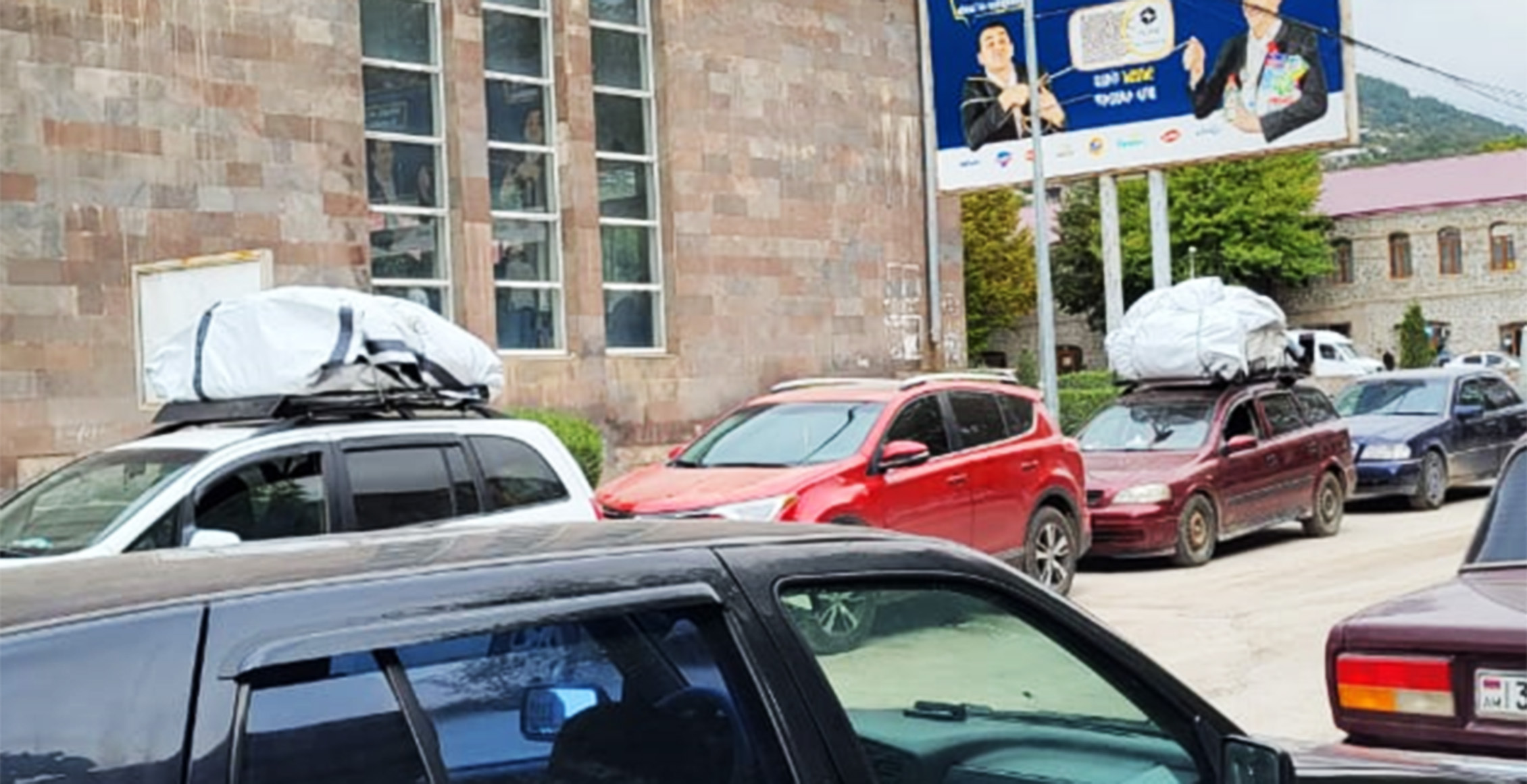 Въезд в Горис забит автомобилями беженцев.