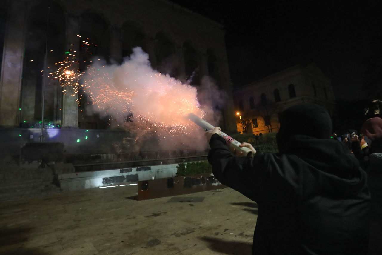 Протесты в Тбилиси: фейерверки и водометы