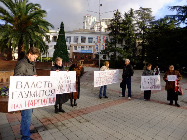 30 ноября и 1 декабря с 11-00 до 18-00 в Сочи на площади возле мэрии прошло два пикета, направленных против действий власти.