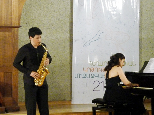 Нарек Газазян, призер конкурса «Евровидение молодых музыкантов – 2012» , выступает в Доме камерной музыки имени Комитаса на мероприятии. посвященном Неделе художественного воспитания.