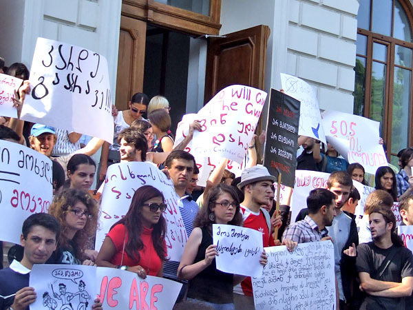 Акция протеста у здания государственной канцелярии, организованная в связи с жестоким обращением с заключенными в Глданской тюрьме. Тбилиси, 19 сентября 2012 г. Фоторепортаж корреспондента "Кавказского узла" Эдиты Бадасян