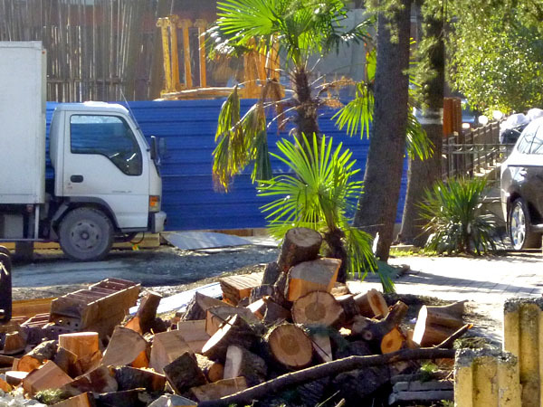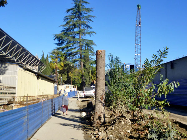 Уничтожение строителями редких пород деревьев на улице Чайковского в Сочи. 28 октября 2012 г. Фоторепортаж корреспондента "Кавказского узла"
