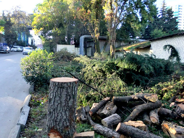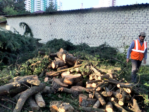 Рабочие спилили около 50 деревьев под "олимпийскую" дорогу. Сочи, 2 ноября 2012 г. Фоторепортаж корреспондента "Кавказского узла" Светланы Кравченко
