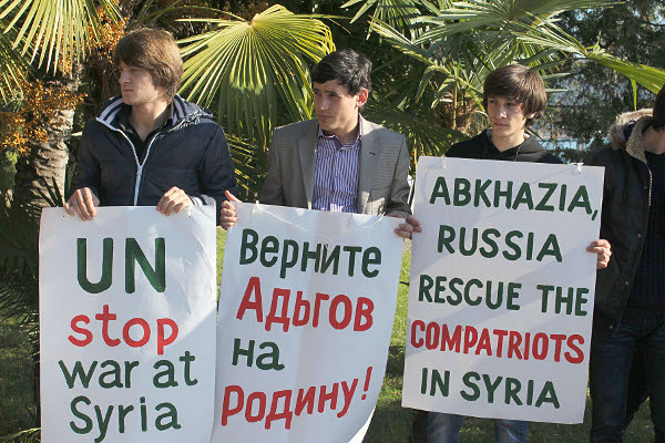 Акция солидарности с черкесской диаспорой Сирии в Сухуме 22 ноября 2012 г. Фоторепортаж корреспондента "Кавказского узла" Анжелы Кучуберия.