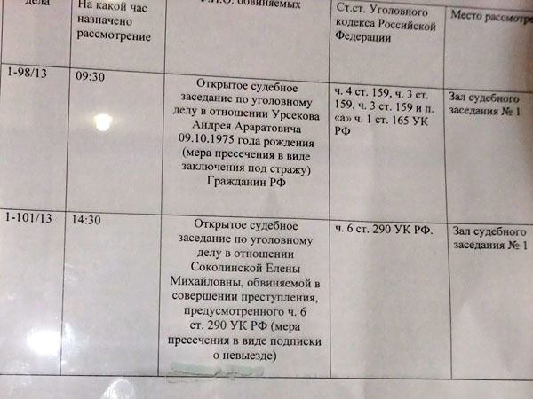 Первое заседание суда по делу о получении взятки Еленой Соколинской. Сочи, 26 февраля 2013 г. Фоторепортаж корреспондента «Кавказского узла» Светланы Кравченко