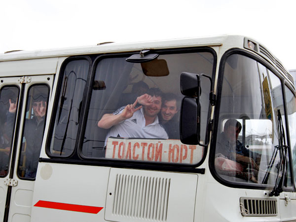 На игру «Терека» с «Зенитом» из Грозного в Махачкалу отправились тысячи чеченских болельщиков. Махачкала, 31 марта 2013 г. Фоторепортаж Руслана Алибекова