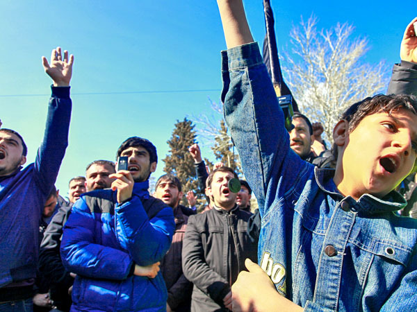 Жители поселка Нардаран потребовали освободить теолога Багирзаде. 1 апреля 2013 г. Фоторепортаж корреспондента "Кавказского узла" Азиза Каримова